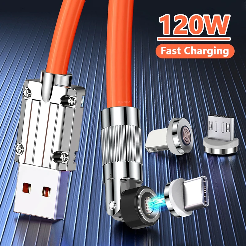Comprar Cable magnético de carga súper rápida, Cable USB a tipo C, micro-usb, 120 M, 540 W, giratorio de 1,2 °, para iPhone