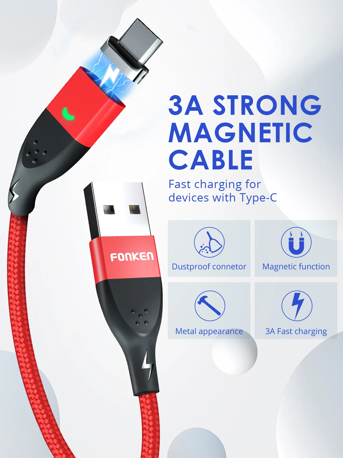 Comprar Cable magnético FONKEN Micro USB tipo C Cables de carga magnéticos cargador magnético para realme Samsung Huawei Xiaomi carga rápida