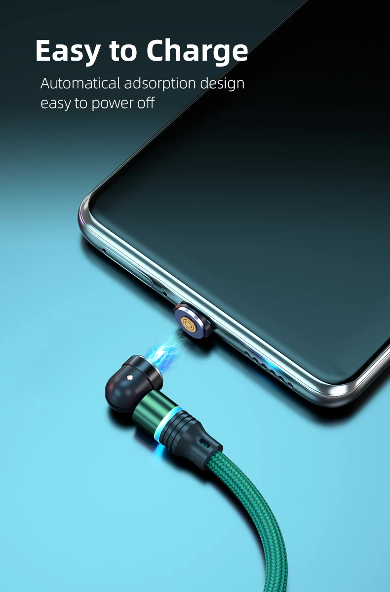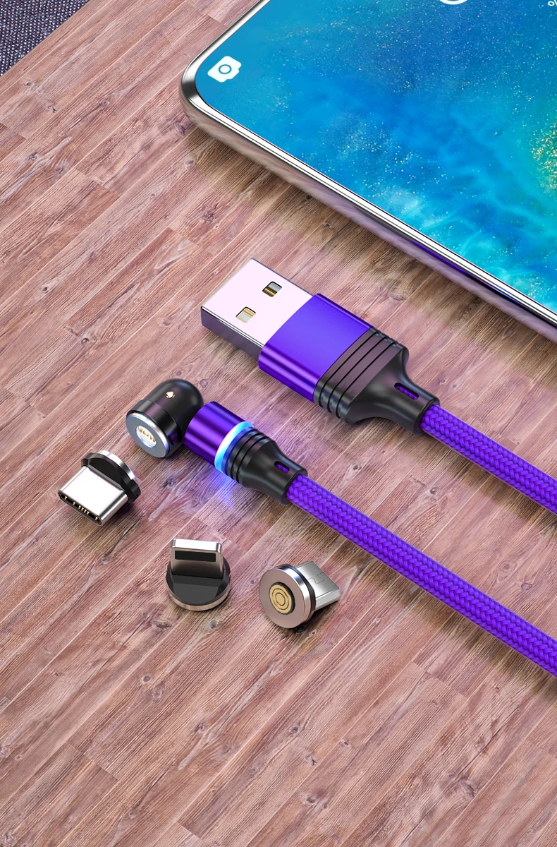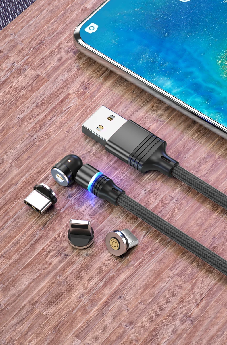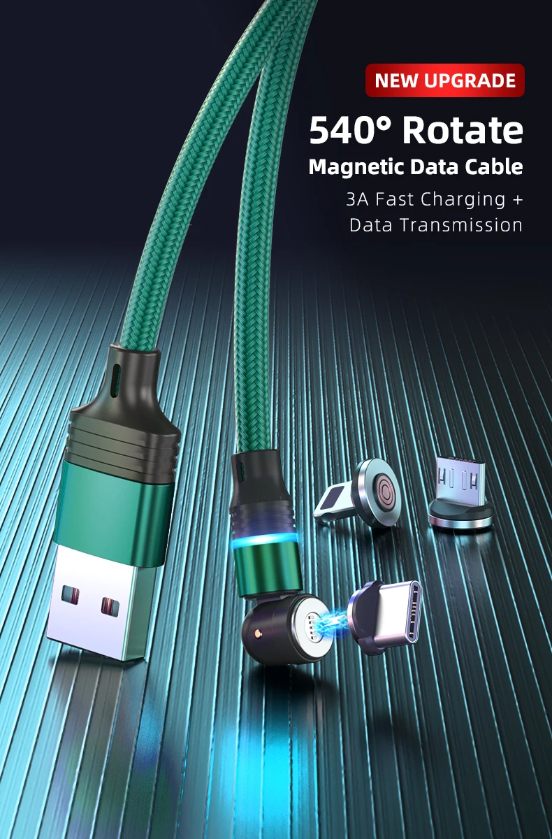 Cable magnético giratorio de 540 grados, Cable de carga rápida 3A para iPhone, Cable USB C para huawei p30 Pro, Cable Micro Usb para teléfono móvil