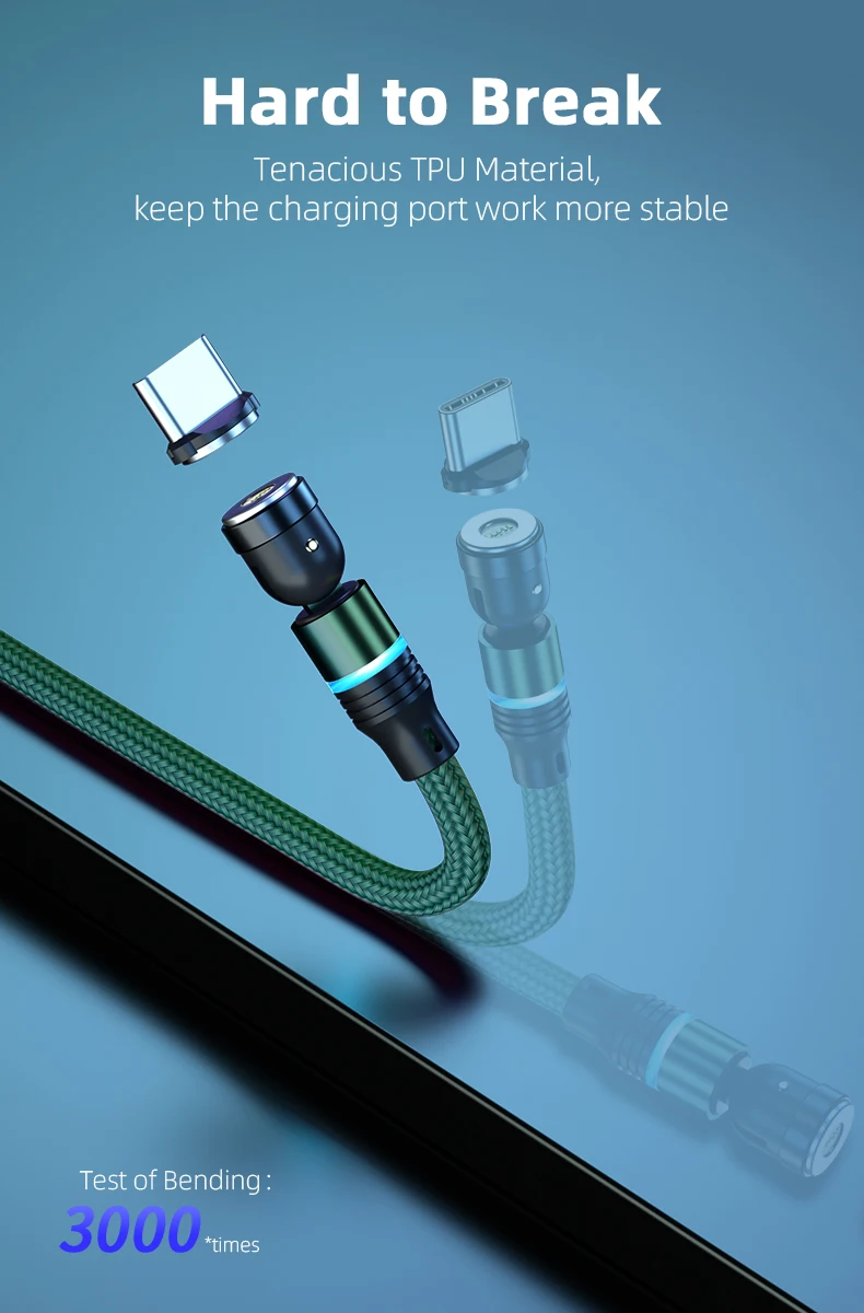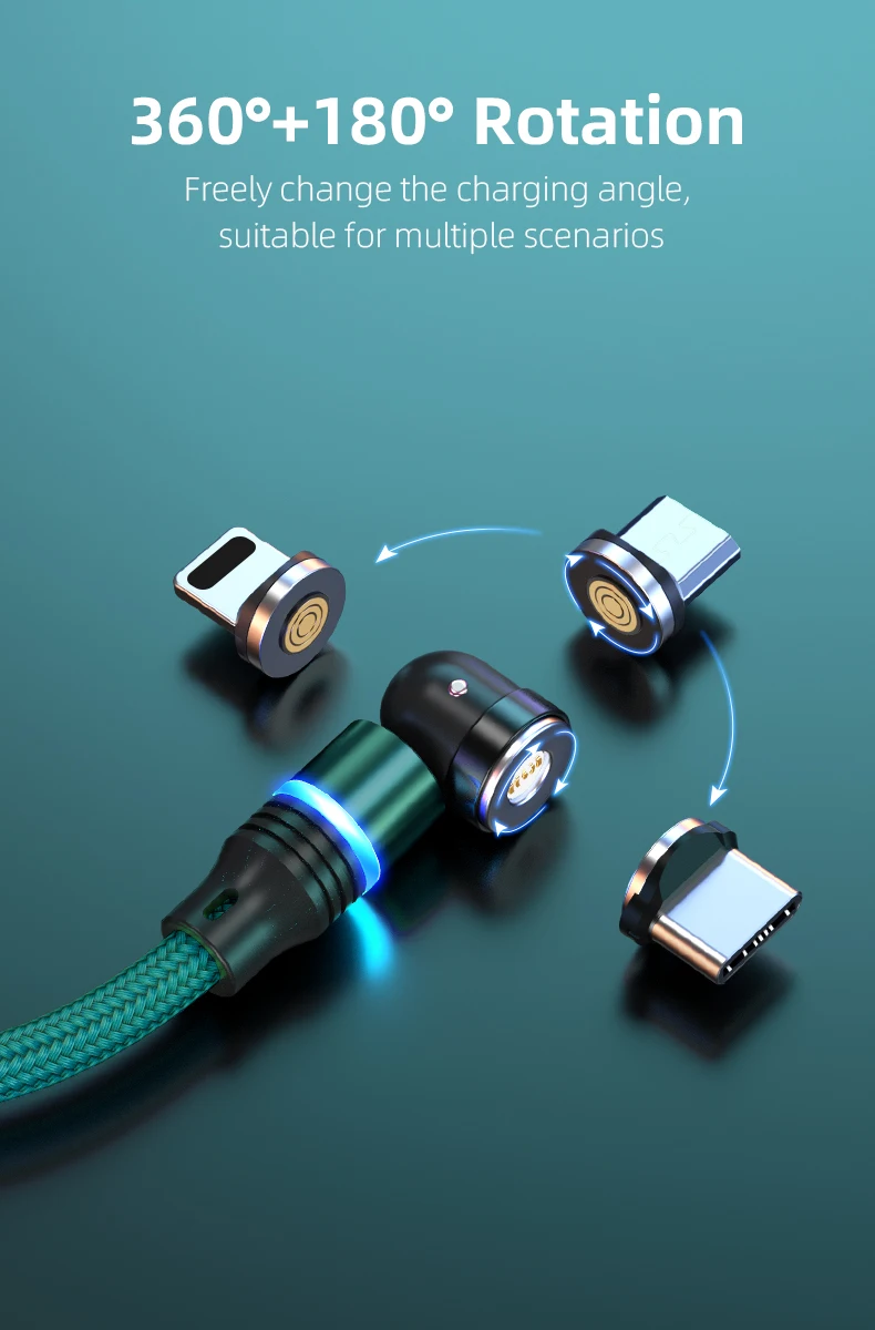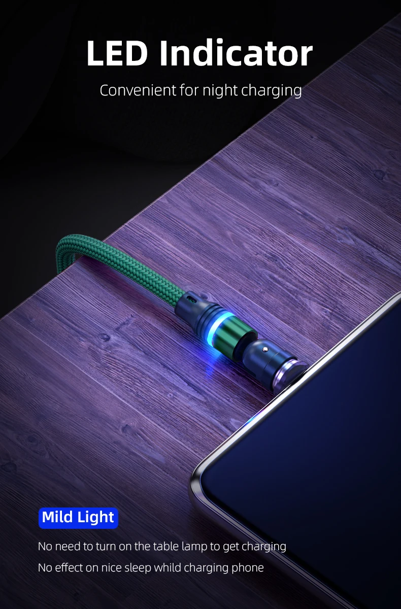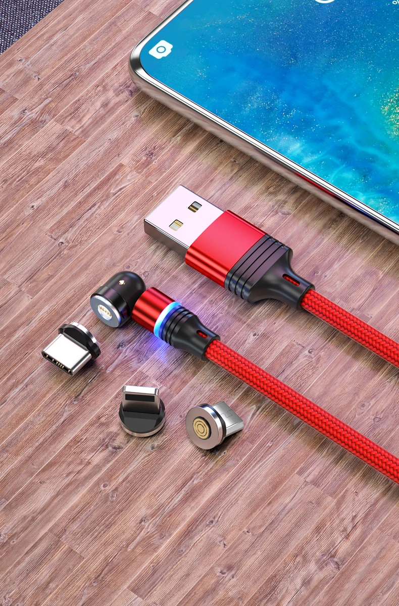 Cable magnético giratorio de 540 grados, Cable de carga rápida 3A para iPhone, Cable USB C para huawei p30 Pro, Cable Micro Usb para teléfono móvil