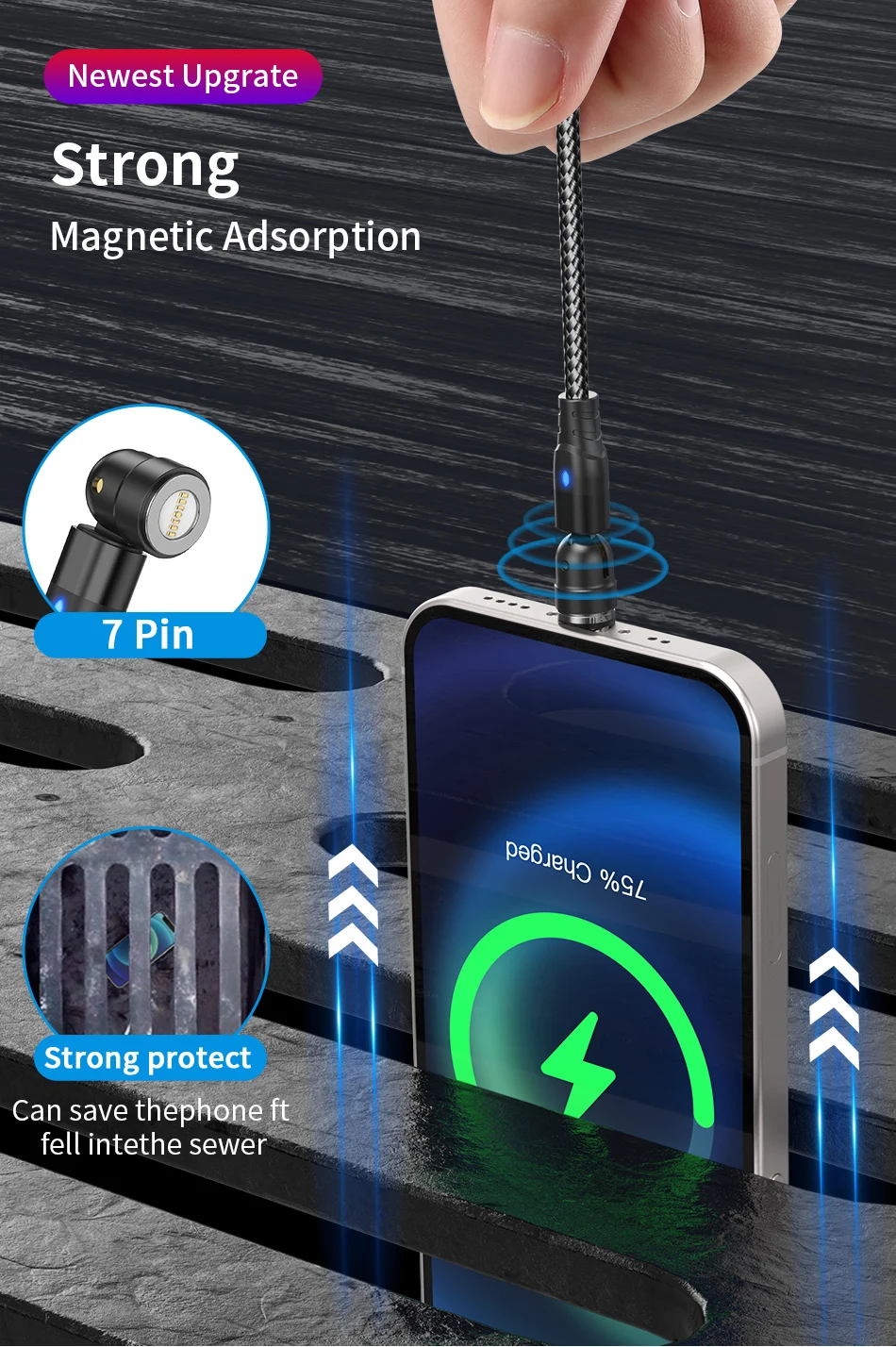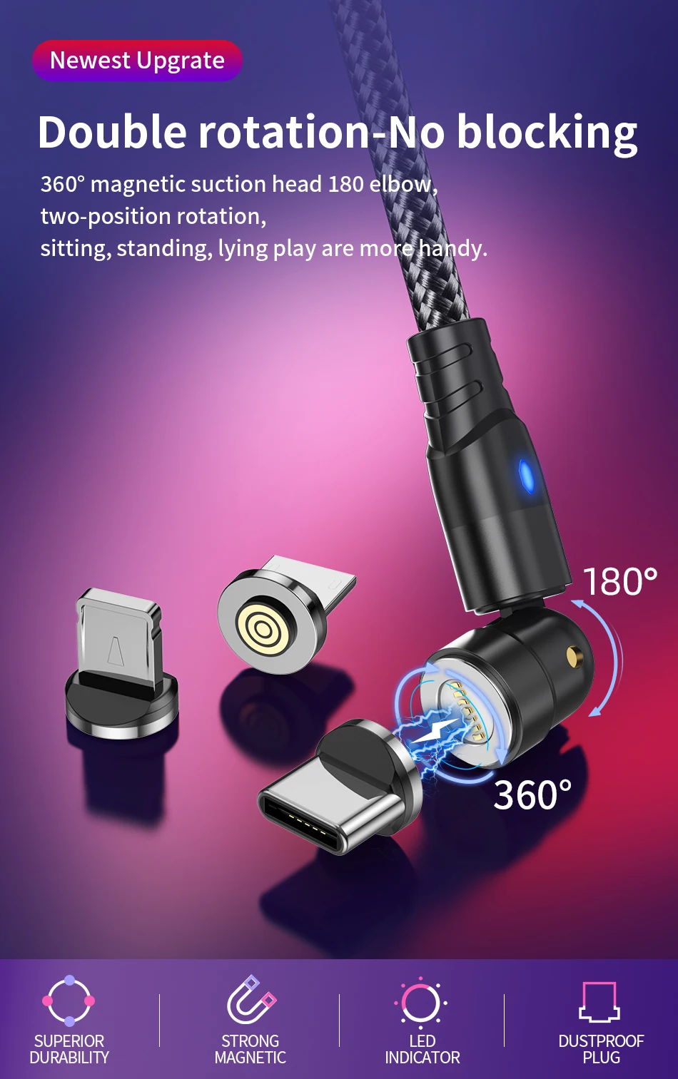 Cable magnético GTWIN, Cables de datos magnéticos de carga rápida, Cable magnético para teléfono móvil, Cable tipo C para iPhone y Android, carga magnética
