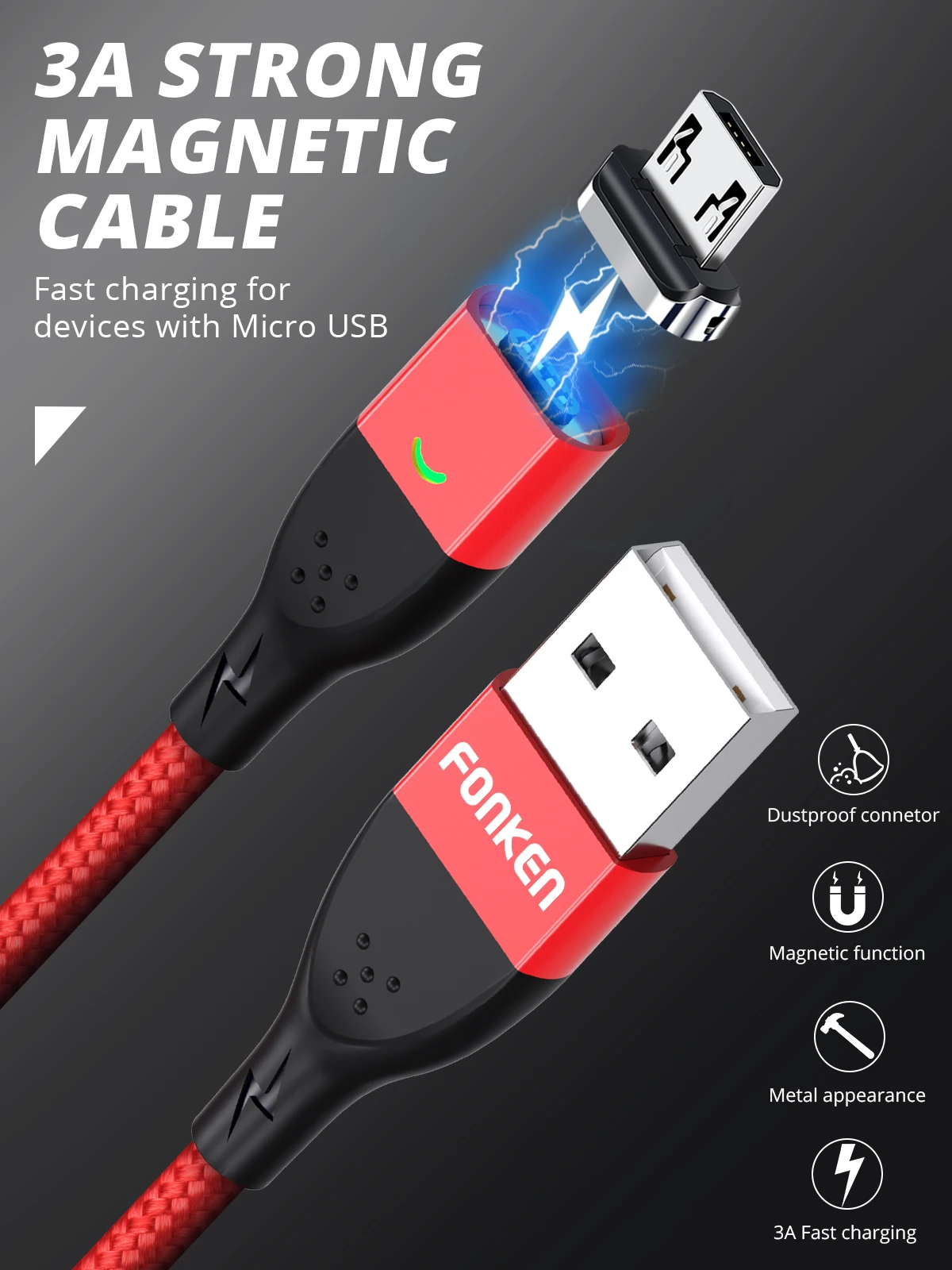 FONKEN USB Micro/USB de tipo C USB magnético Cable de teléfono