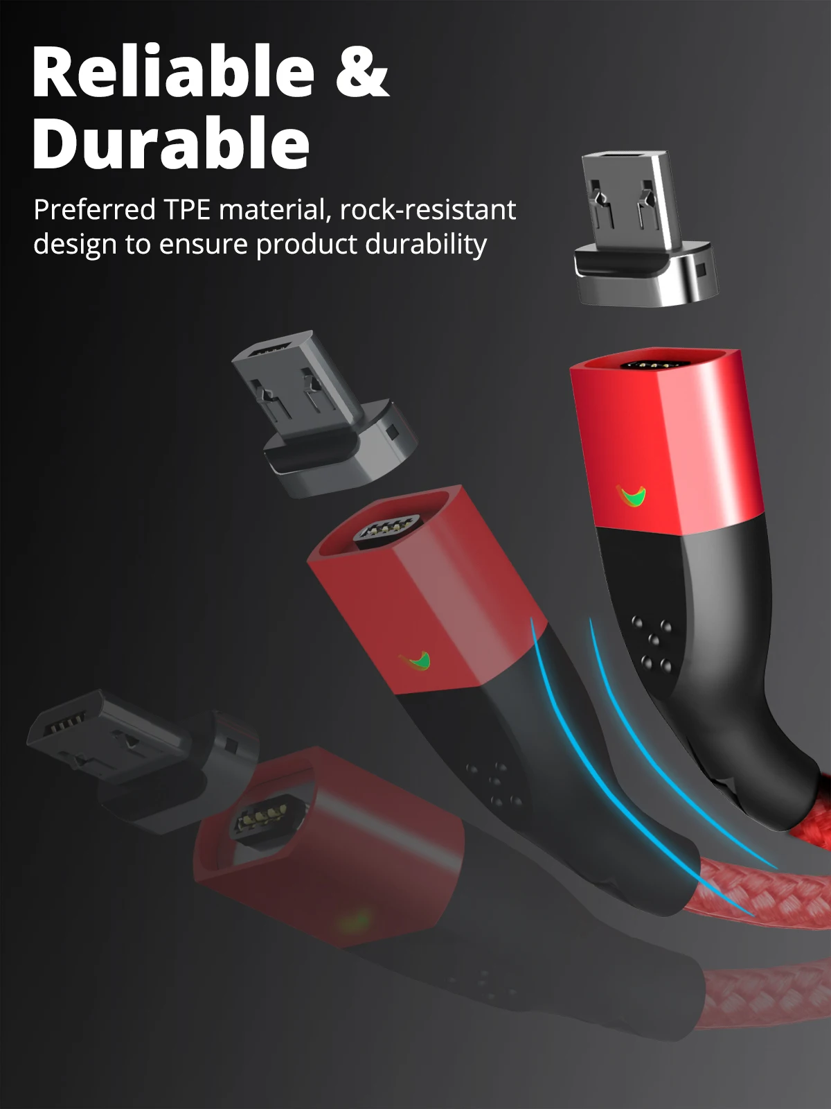 Comprar Cable magnético Micro USB C para móvil, Cable de carga rápida de 1m, 2m, carga de datos para Samsung, Xiaomi