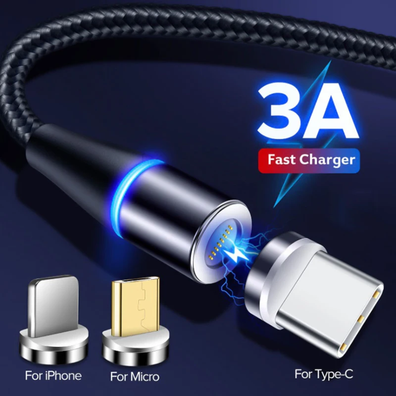 Comprar Cable magnético Micro Usb para iphone, adaptador de carga rápida tipo C, 3A, Cable magnético para Samsung y Xiaomi