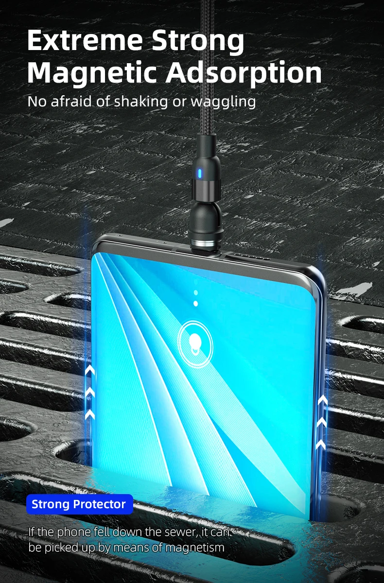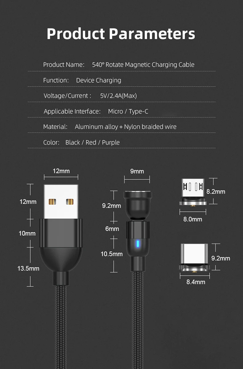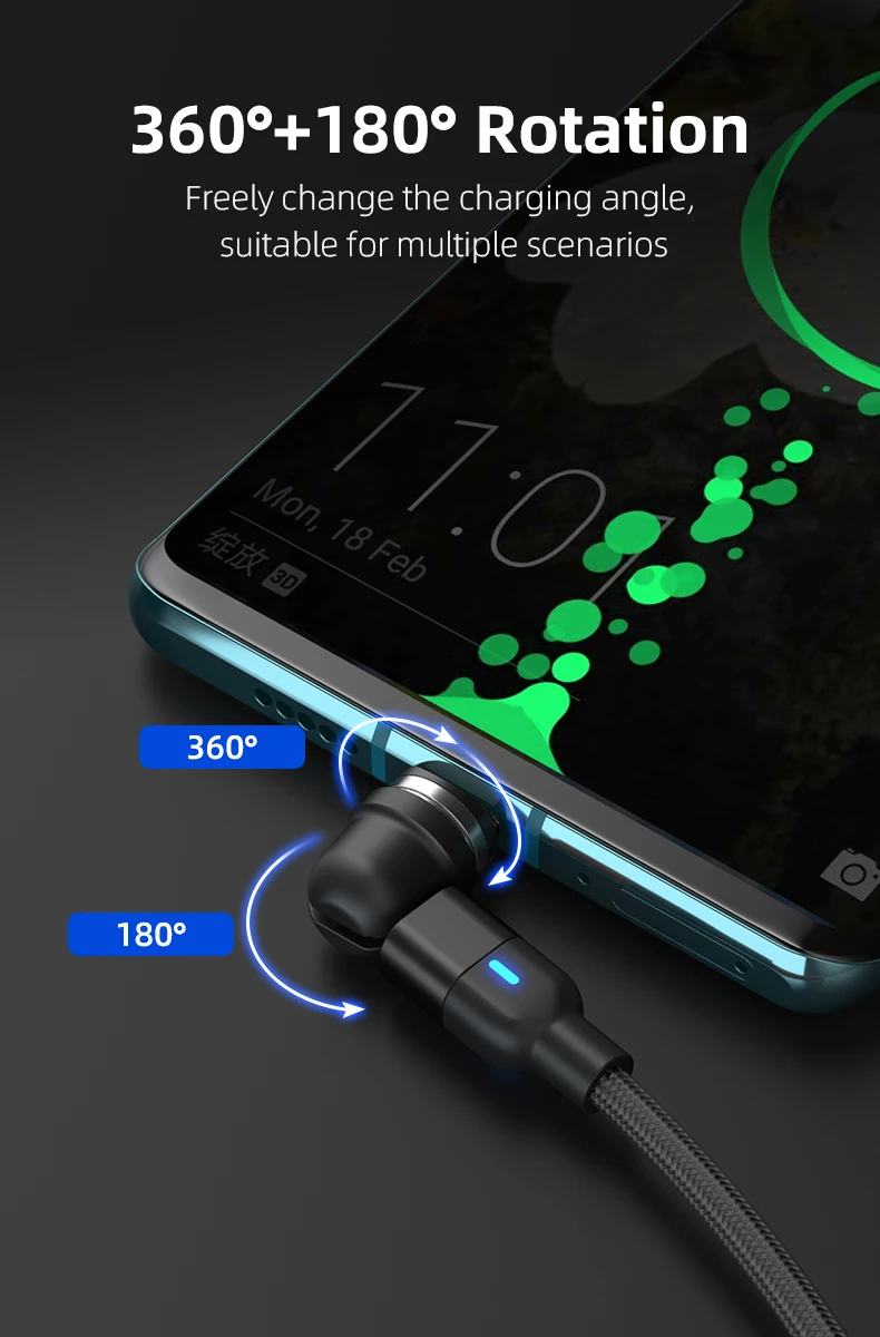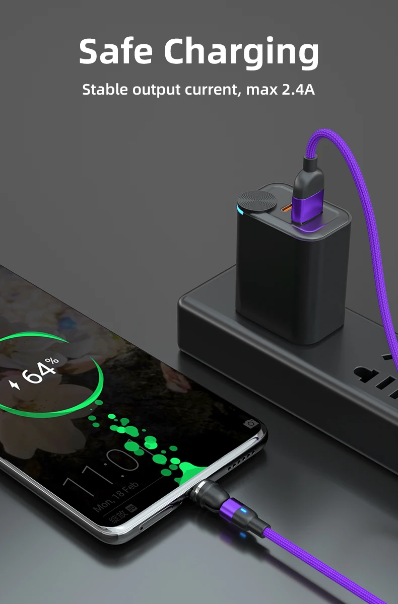 Comprar Cable magnético USB tipo C 2,4A 540 rotación Micro cargador 1M 2M Cable de carga de teléfono móvil para Samsung Xiaomi Redmi