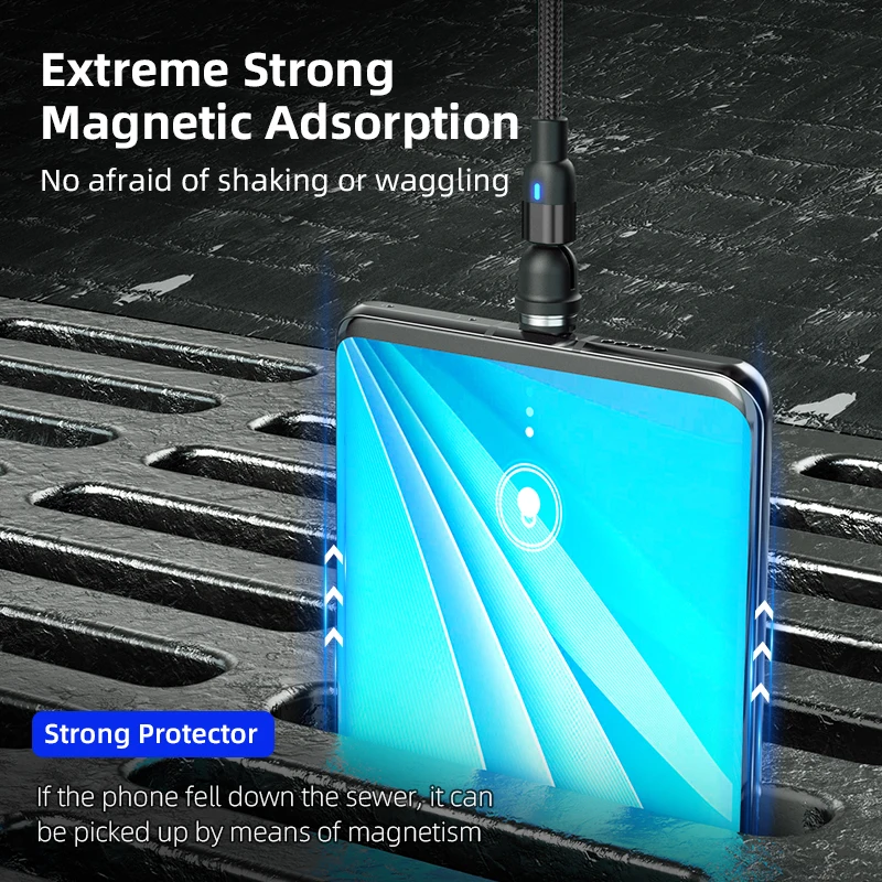 Nombre: Cable de carga de succión magnética giratorio de cabeza redonda, cabezal magnético redondo