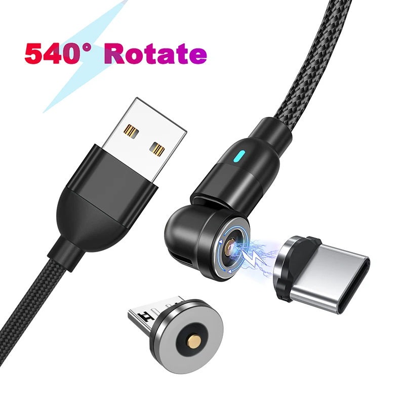 Comprar Cable magnético USB tipo C 2,4A 540 rotación Micro cargador 1M 2M Cable de carga de teléfono móvil para Samsung Xiaomi Redmi