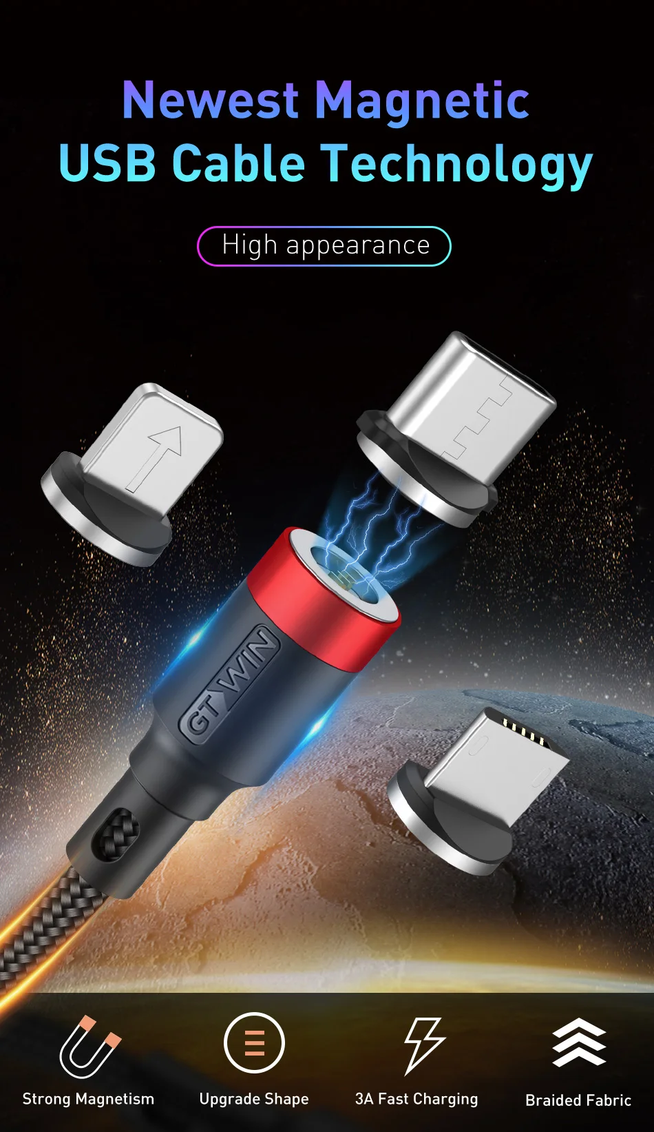 Comprar Cable magnético USB tipo C, Cable de carga rápida 3A para iphone, Samsung, Cable de carga magnética tipo C, Cable de datos USB para teléfono móvil