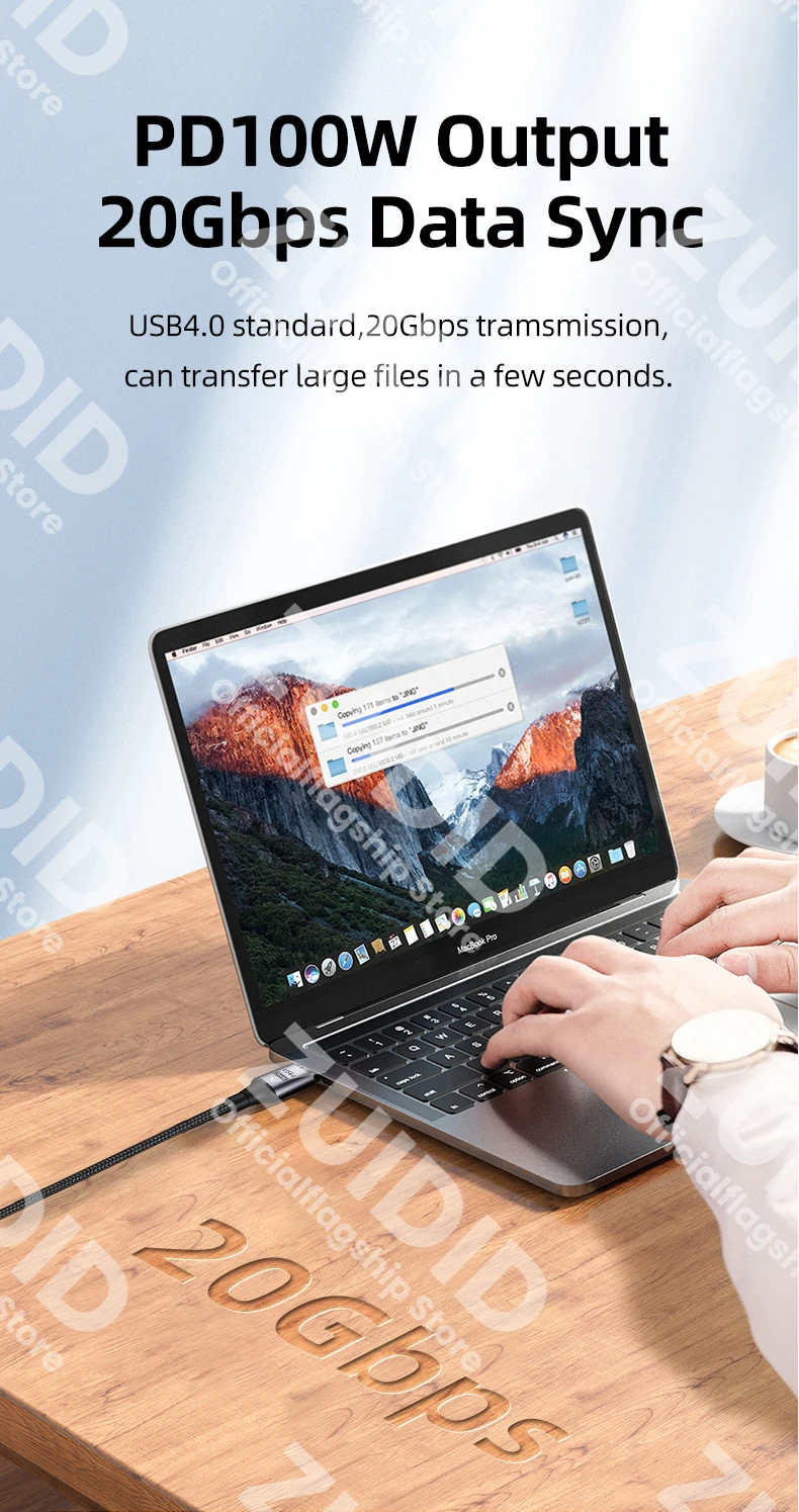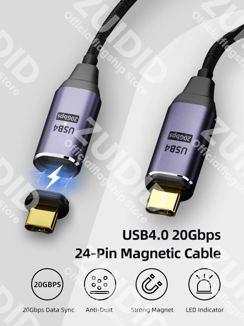 Cable magnético USB4.0 de 20 Gbps PD 100W 5A Carga rápida USB tipo C a tipo C 8K@60Hz Thunderbolt 3 Cable de datos para Macbook Pro 2m