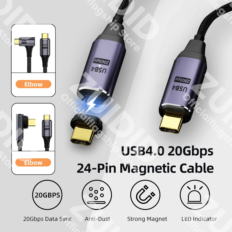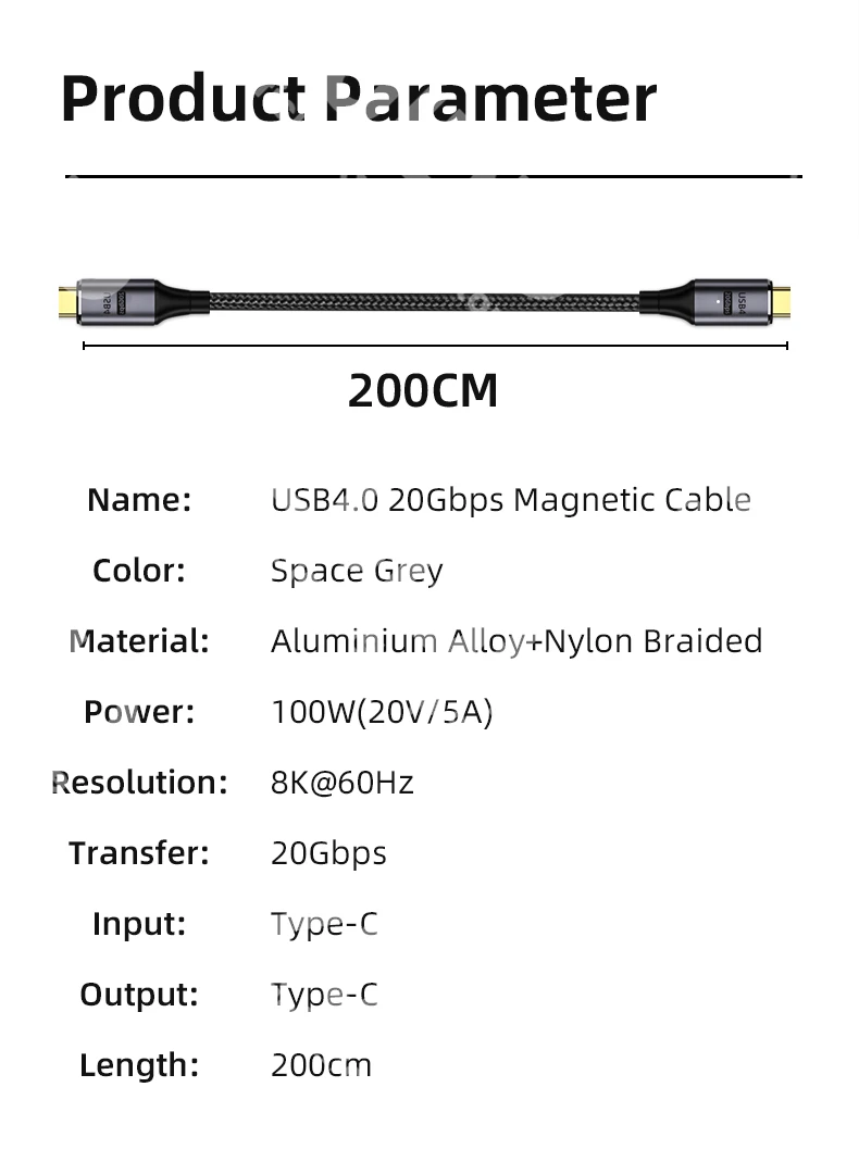 Comprar Cable magnético USB4.0 de 20Gbps PD 100W 5A carga rápida USB tipo C a tipo C 8K @ 60Hz Cable de datos Thunderbolt 3 para Macbook Pro 2m
