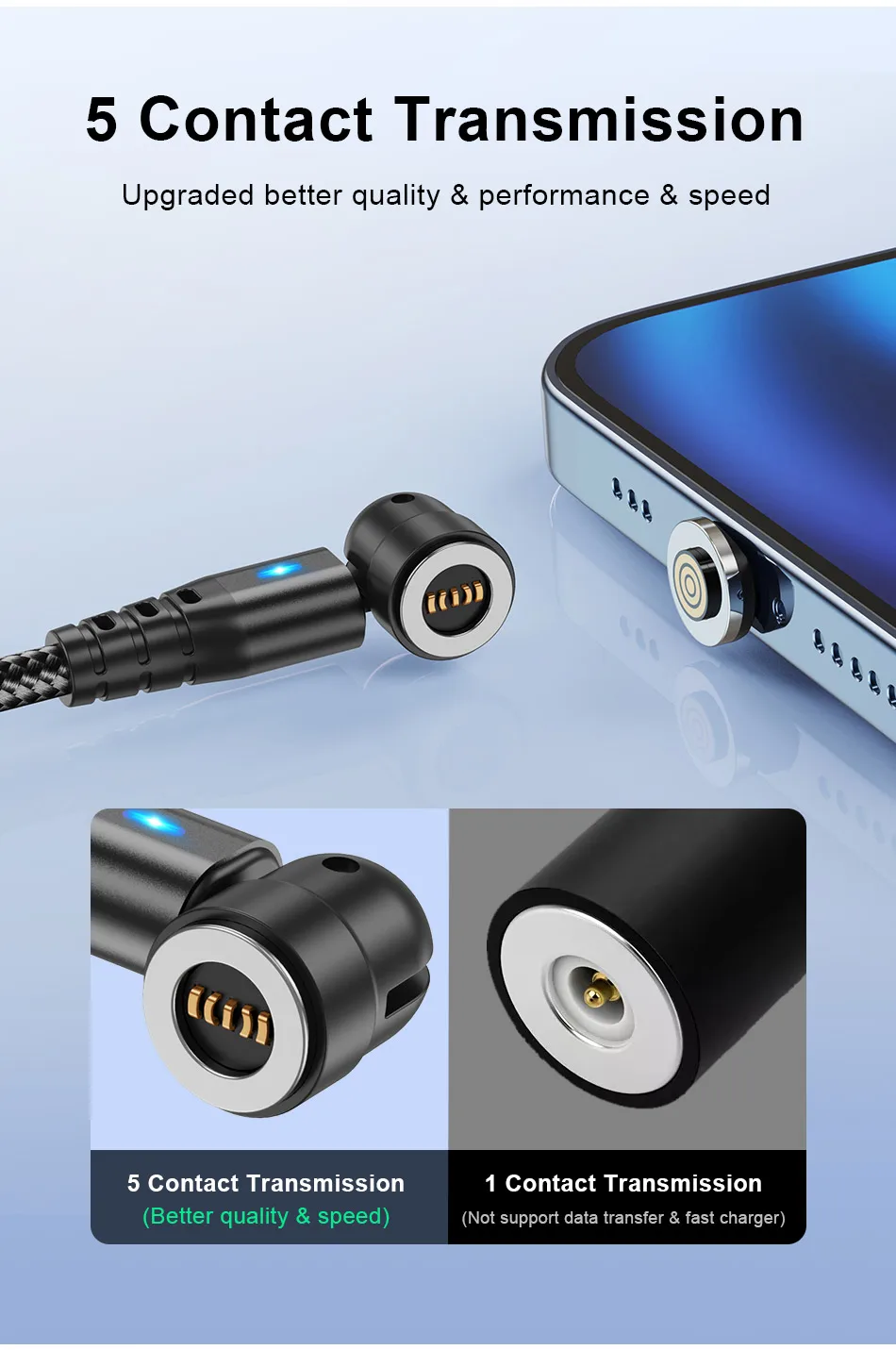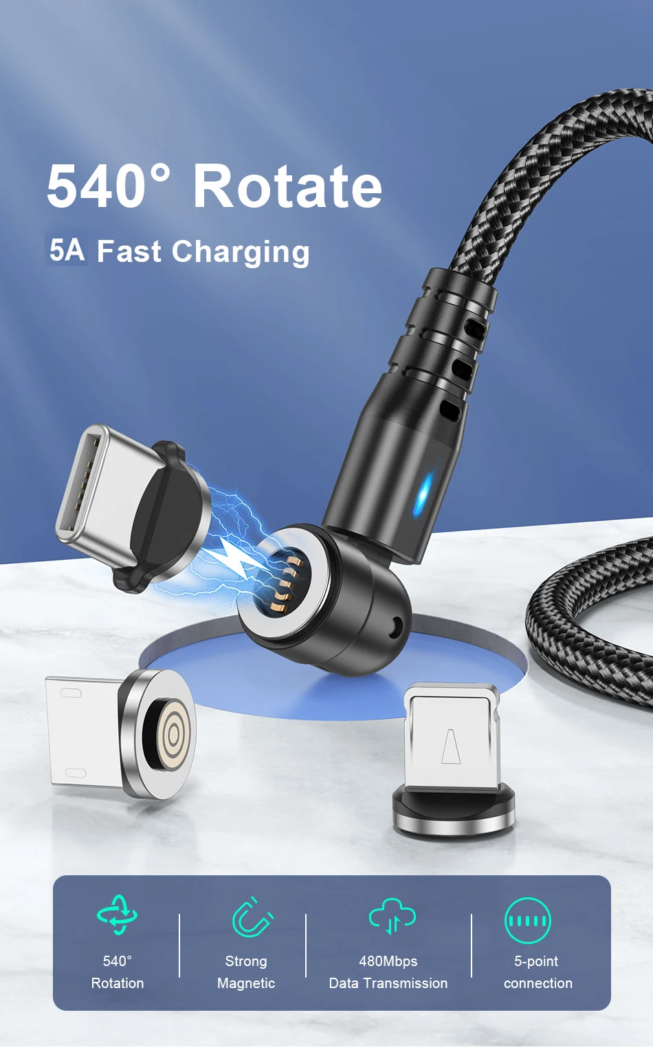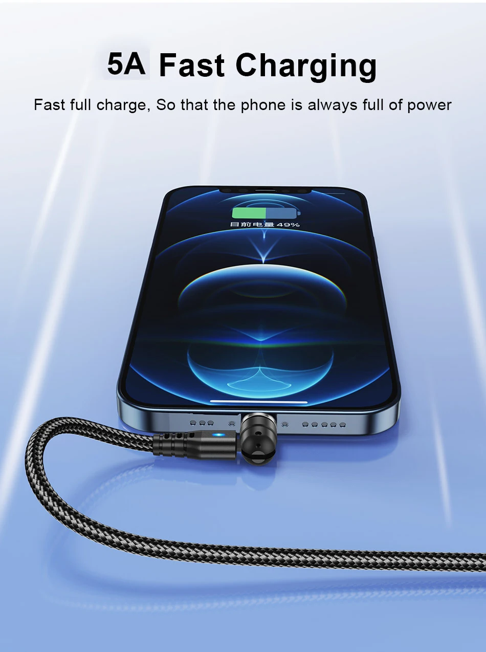 Comprar Cable magnético USLION 540 giratorio 5A, Cable Micro USB tipo C de carga rápida para iPhone Xiaomi, Cable cargador magnético, Cable USB