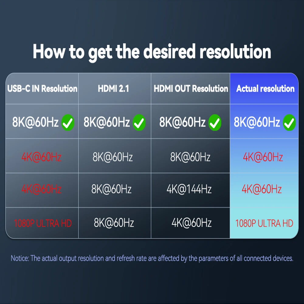 Impresionante resolución de vídeo de 8K a 60 Hz / 4K a 240 Hz: conecte monitores y televisores para juegos de 8K a 60 Hz o 4K 240 Hz a computadoras portátiles, teléfonos inteligentes, tabletas y más con el cable HDMI a tipo C;El cable USBC a HDMI admite una resolución de vídeo máxima de 8K 60Hz;Asegúrese de que el firmware de su pantalla esté actualizado para disfrutar de resoluciones ultraaltas.
