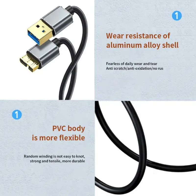 Cable macho a macho de disco duro externo, cable de datos HDD de carga rápida para Note 3, S5, 1/2/2 ", 3,0 a Micro B
