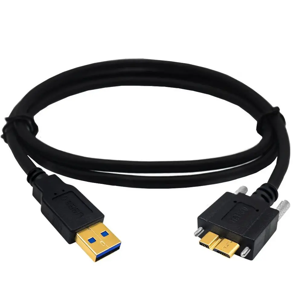 Comprar Cable Micro B USB 3,0 Micro B con tornillos de bloqueo de montaje en Panel Cable de sincronización de datos previene 30cm 100cm 150cm 3m 5m