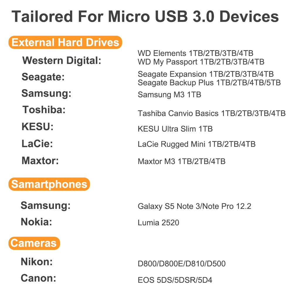 Comprar Cable Micro B USB C 3,0 para disco duro externo, Cable HDD de 5Gbps para Samsung S5, Note3, Toshiba, WD, Seagate, datos HDD, USB3.1