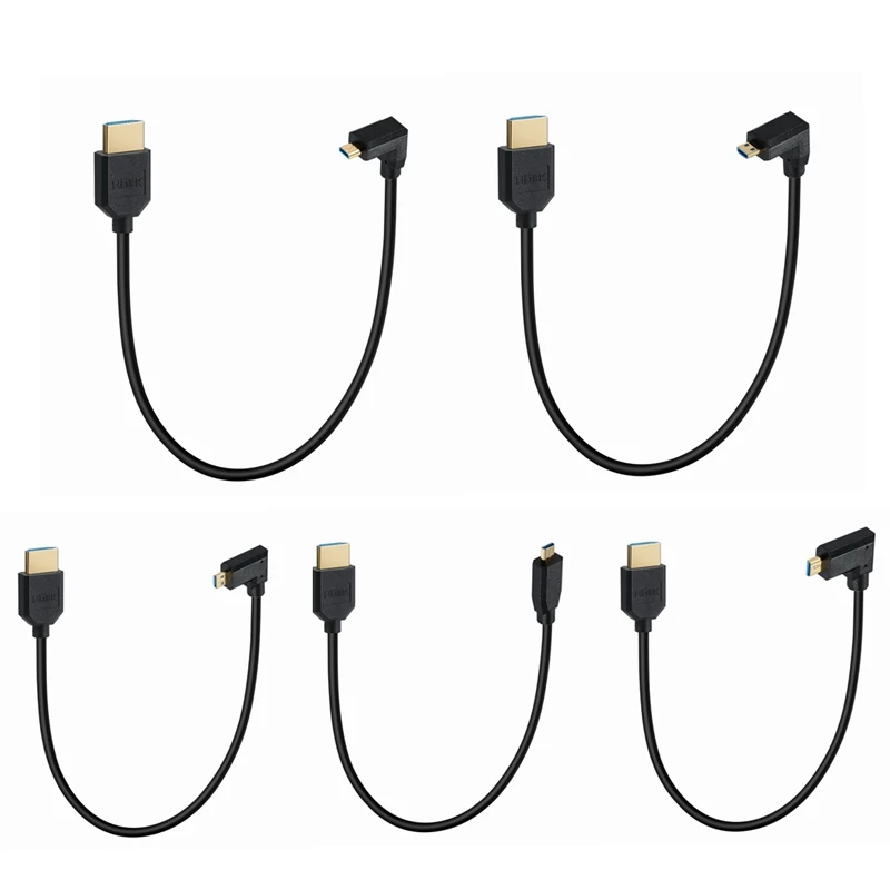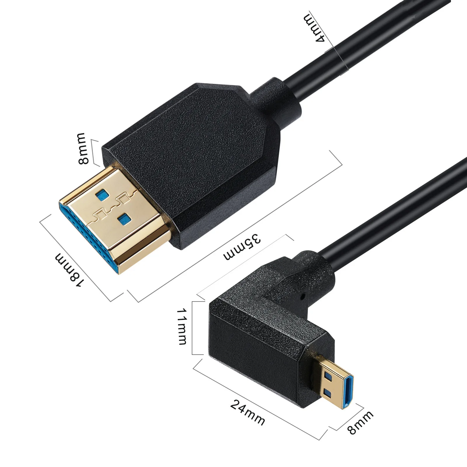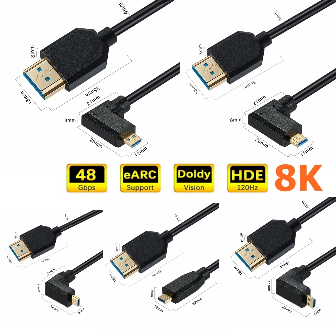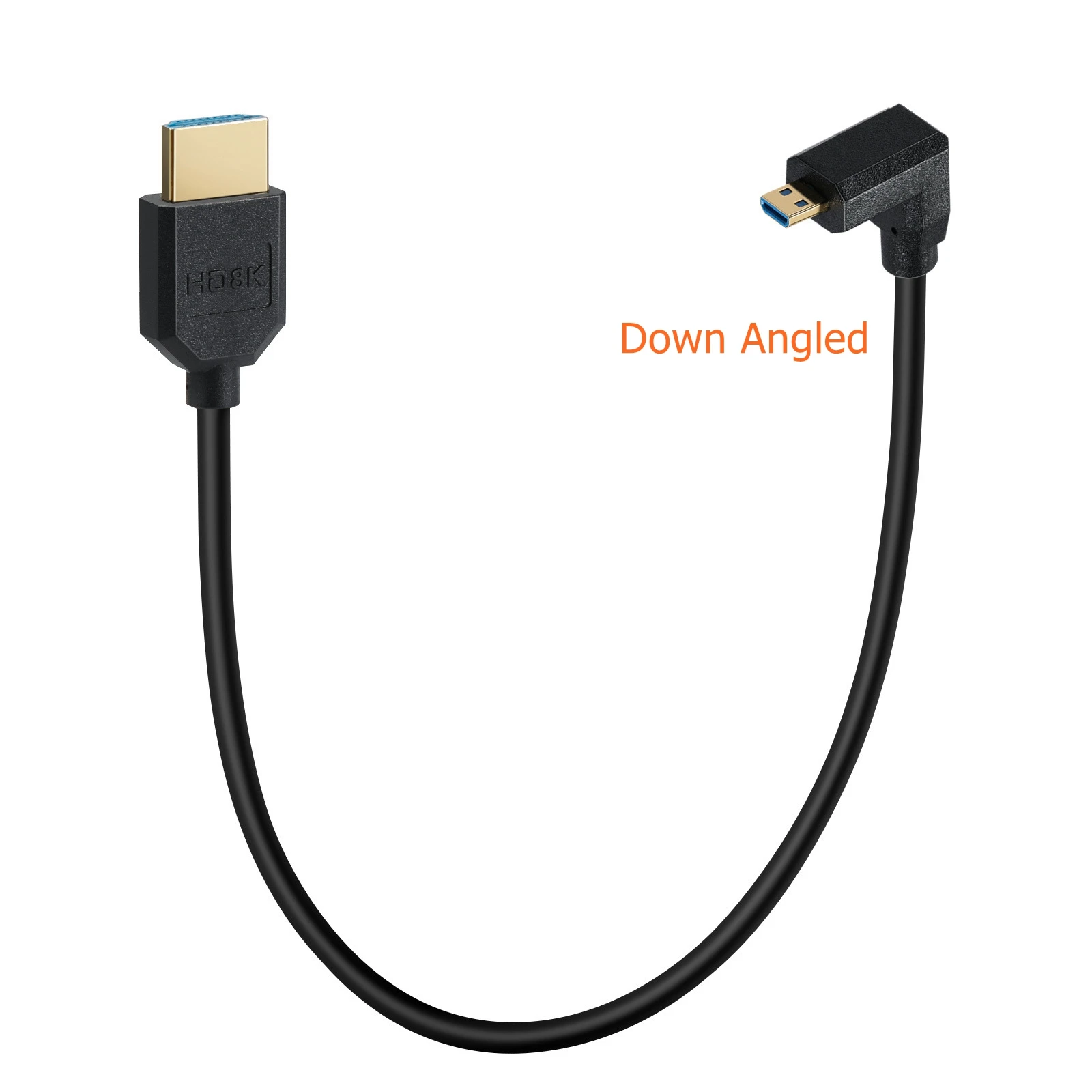 Comprar Cable Micro HD a HDMI con ángulo de 90 grados, compatible con 2,1 V, 48gbps, auricular HDR10 HDCP2.2, Cable de 0,3 M para Monitor de tarjeta gráfica de cámara