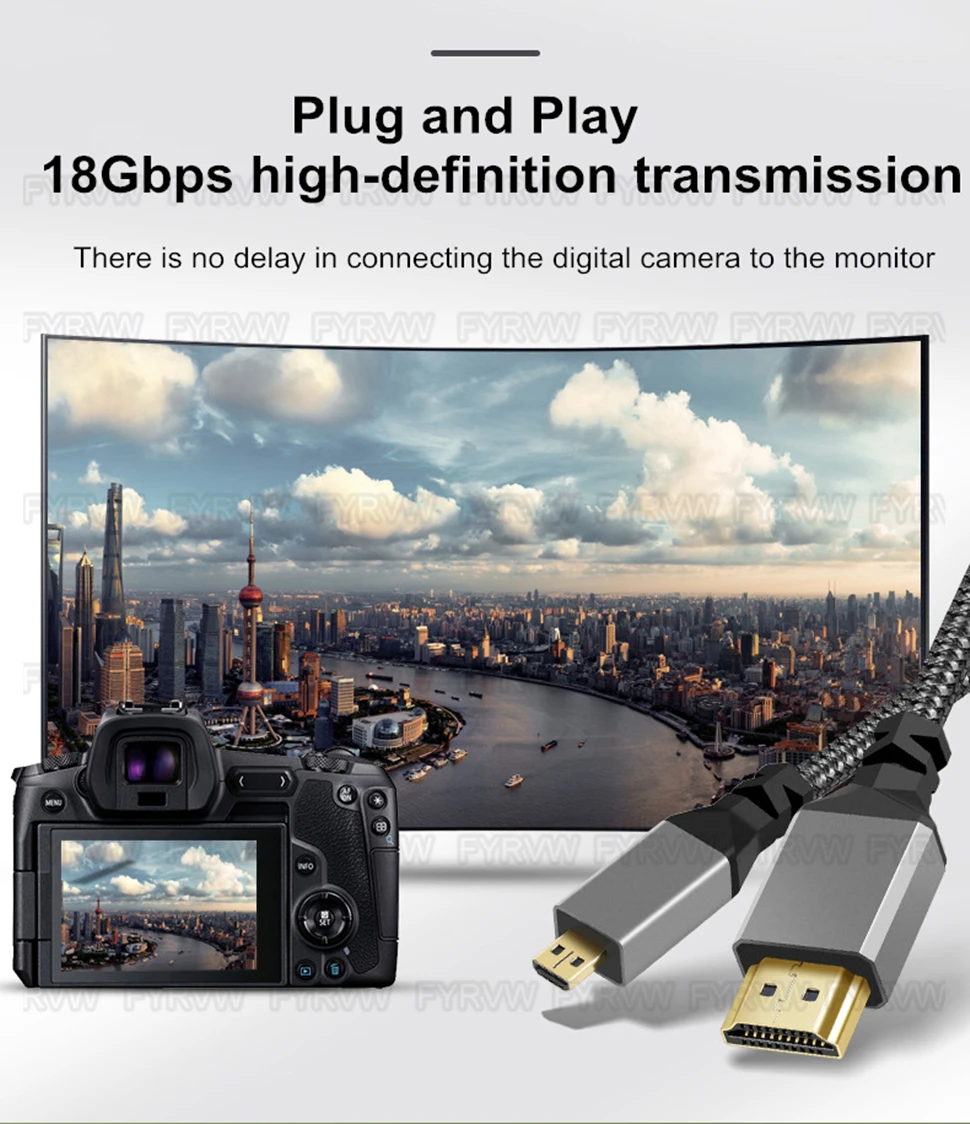 Soporta Resolución 4K: con soporte para resoluciones de hasta 4K a 60Hz (también soporta 2K @ 165Hz), este micro cable Micro HDMI-compatible a HDMI-compatible Cable Micro macho a HDMI-compatible Cable macho Adaptador de cable trenzado de nylon 2,0 4K @ 60HZ 2K @ 165HZ 18Gbps Compatible con Laptop monitor de cámara compatible con HDMI a Micro compatible con HDMI 10 pies garantiza que pueda disfrutar de sus películas favoritas, Espectáculos y juegos con un detalle y una claridad impresionantes.