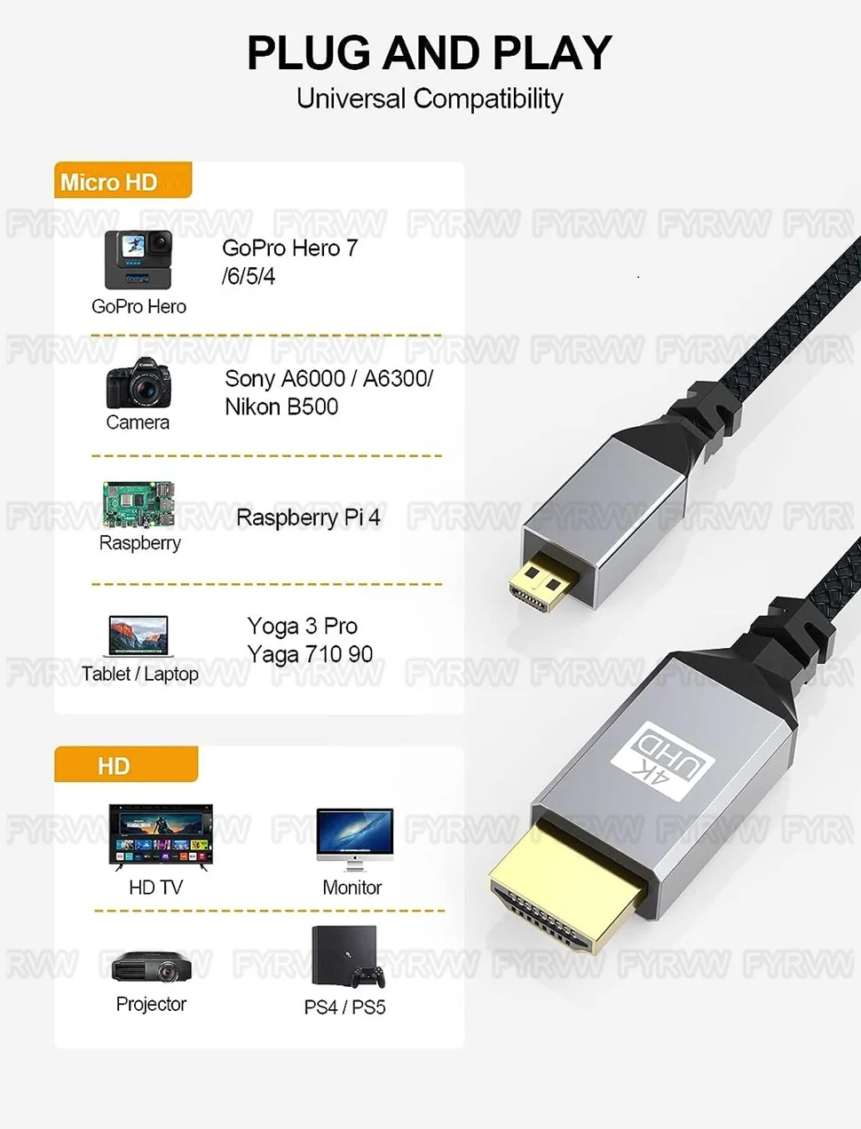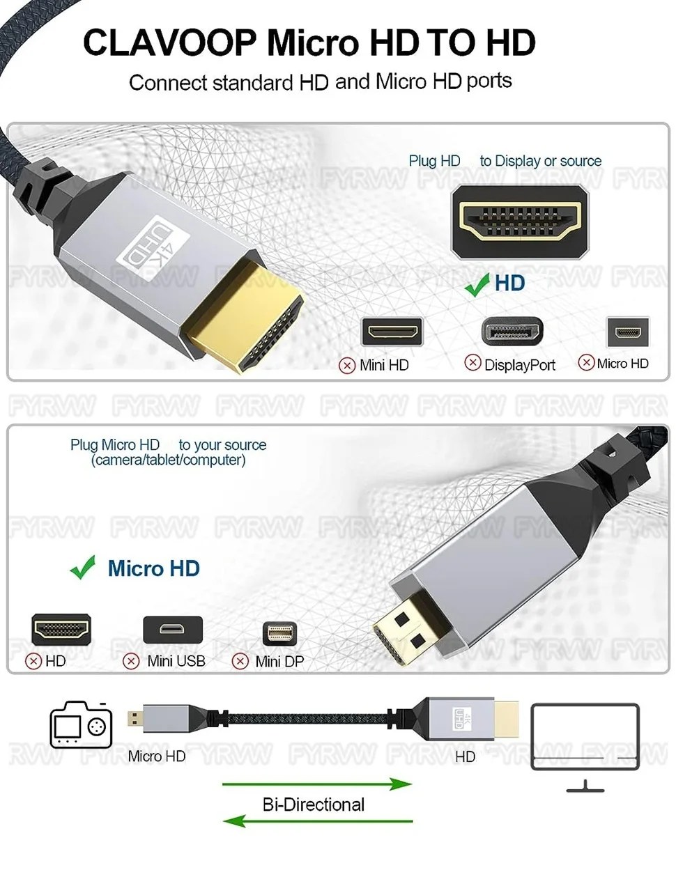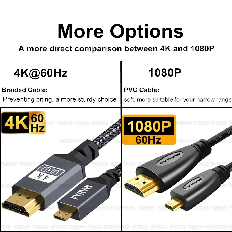 Tenga en cuenta: hay 2 opciones para el producto, ¡cable trenzado 4K/cable flexible 1080P!
