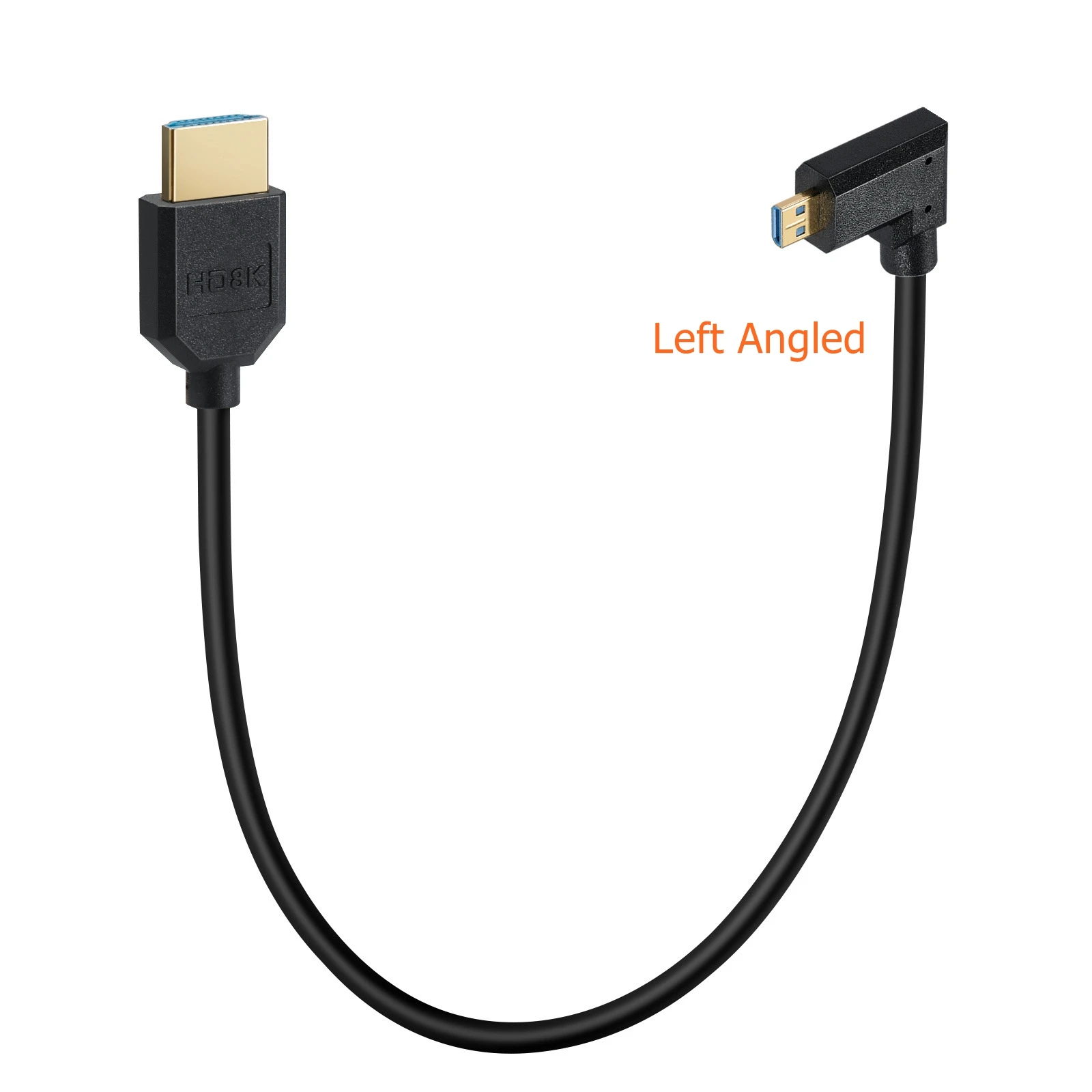 Comprar Cable Micro HDMI en ángulo de 90 grados a HDMI, compatible con 2,1 V, 48Gbps, EARC HDR10 HDCP2.2, 0,3 M, para cámara, tarjeta gráfica, Monitor