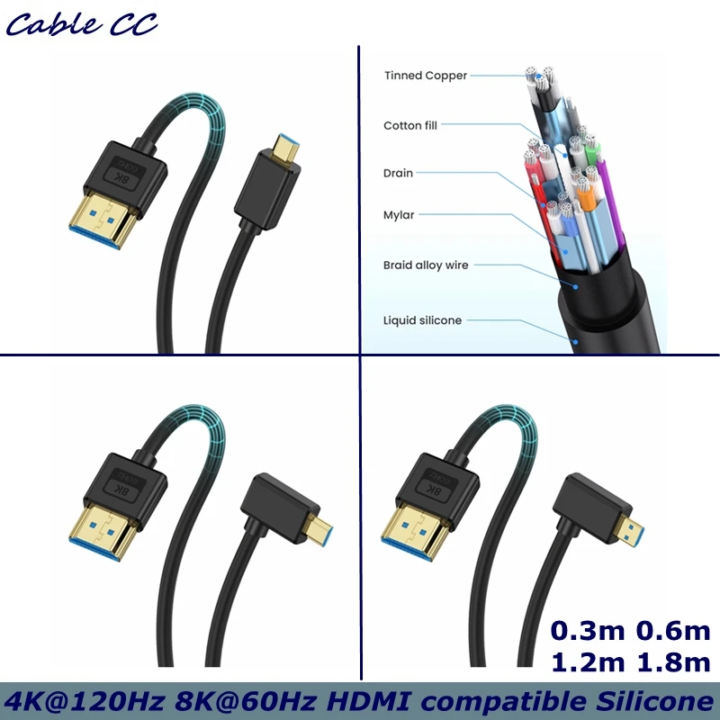 Verdaderamente portátil y portátil, el cuerpo de cordón suave elástico Q es adecuado para guardarlo en el bolsillo o en el bolsillo de la correa de su cámara/videocámara.El cable Micro HDMI 8K admite una resolución más alta de 8K 60Hz, compatible con 4K 120Hz/60Hz, 1080P, etc., lo que le permite disfrutar de una mejor experiencia visual y fluida en una pantalla grande.