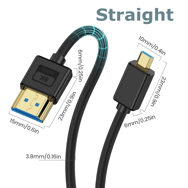 Velocidad ultraalta de 48 Gbps: este cable de versión Micro HDMI 2.1 de 8k admite un ancho de banda de hasta 48 Gbps para transmisión de alta velocidad sin perder señales, mucho más rápido que HDMI 2.0 y HDMI 1.4.