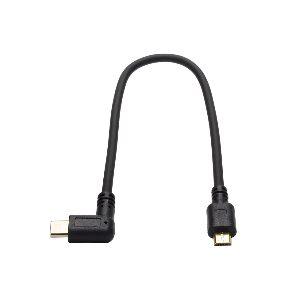 90 Micro Mini USB Cable 5 pines macho a macho USB 3,1 tipo C codo a Mini Micro USB 2,0 OTG adaptador de datos convertidor Cable de carga 25cm