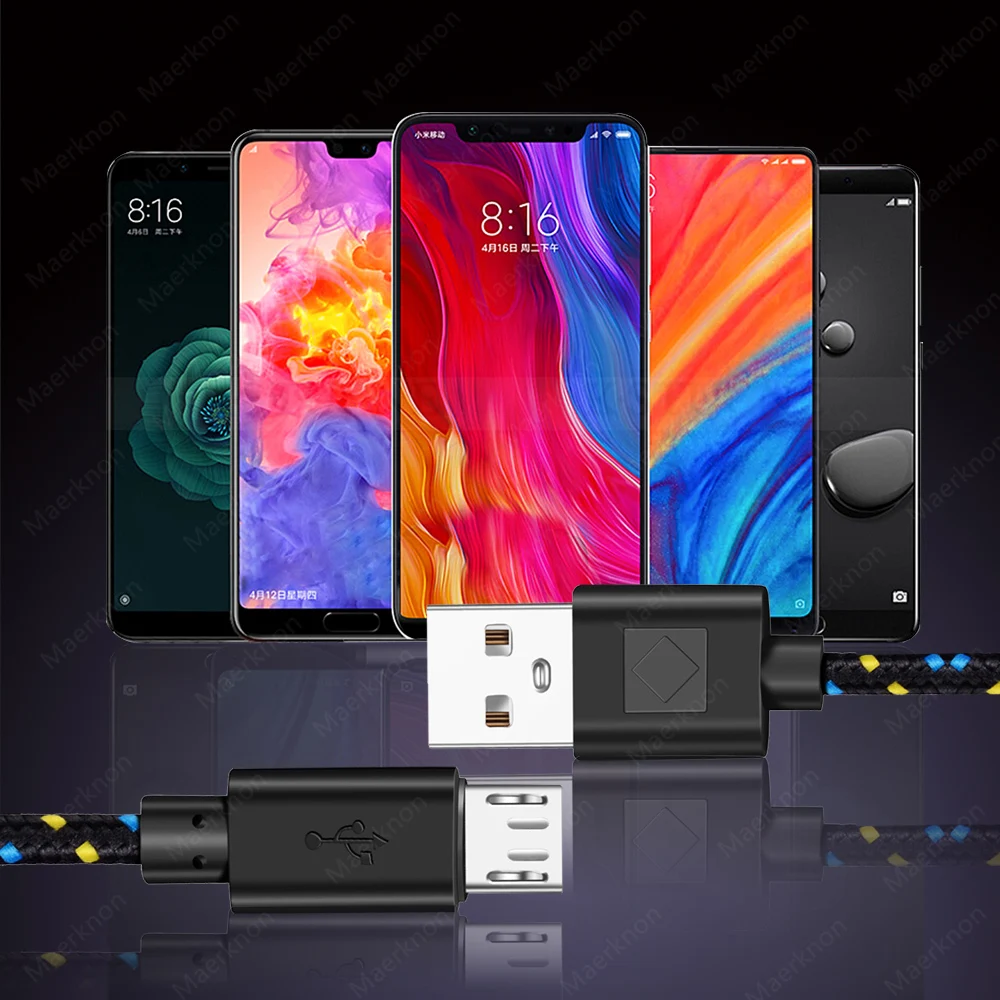 2.4A Micro USB Cable Fast Charging Nylon Braided Data Sync Cord Mobile Phone Charge Wire For Samsung Xiaom Huawei Microusb Cable