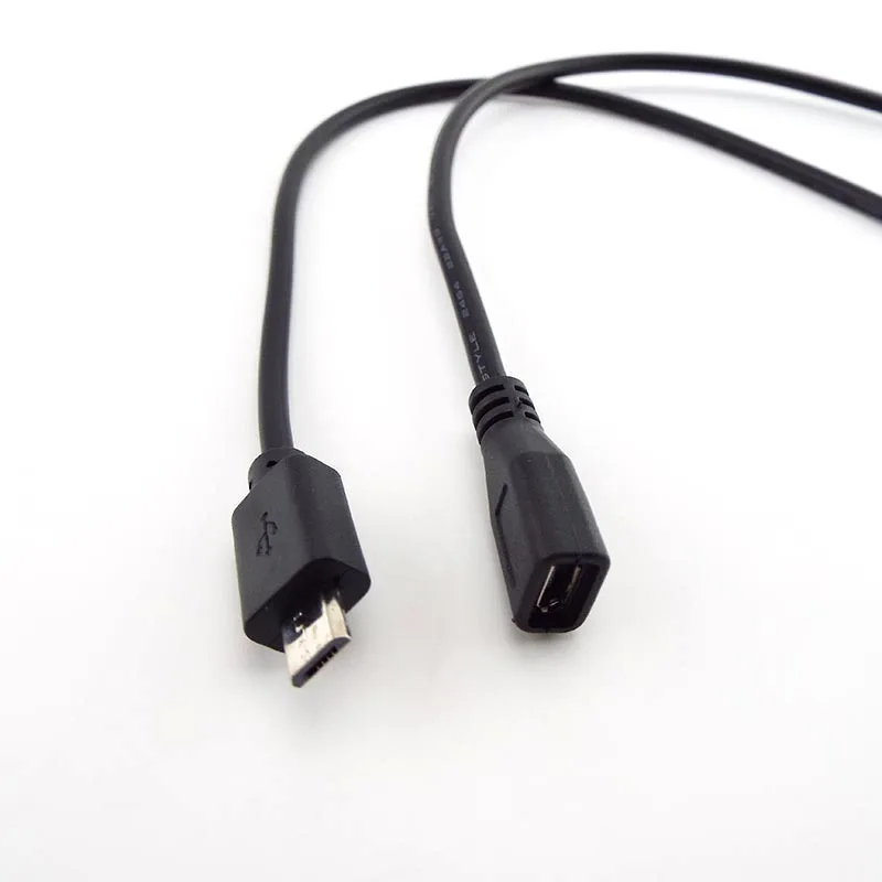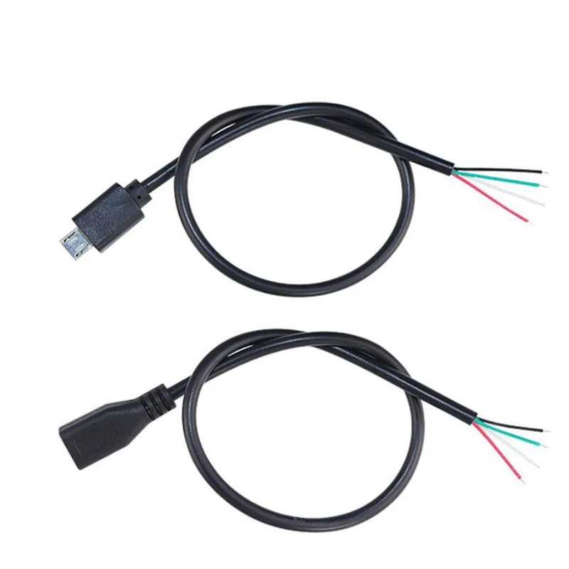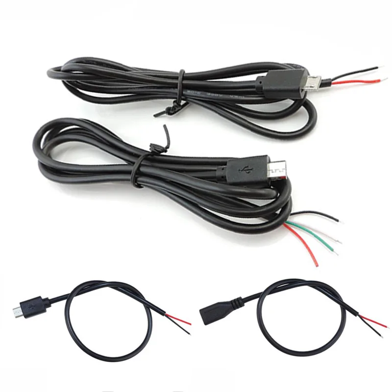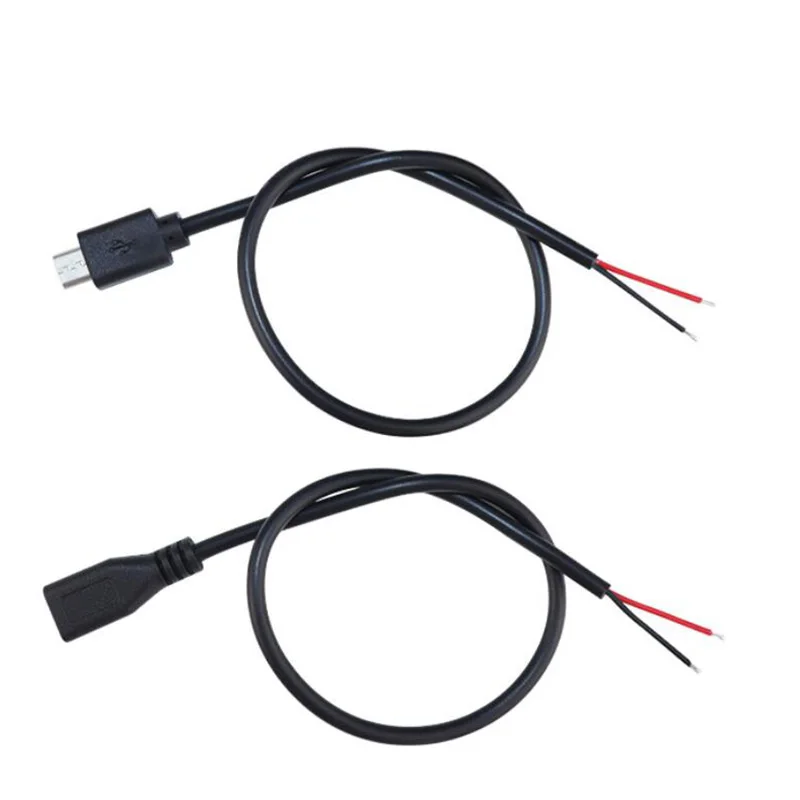 30cm/1mDIY Micro USB 2,0 enchufe macho conector hembra 4 pines 2 pines Cable de extensión Cable de carga de energía transmisión de datos