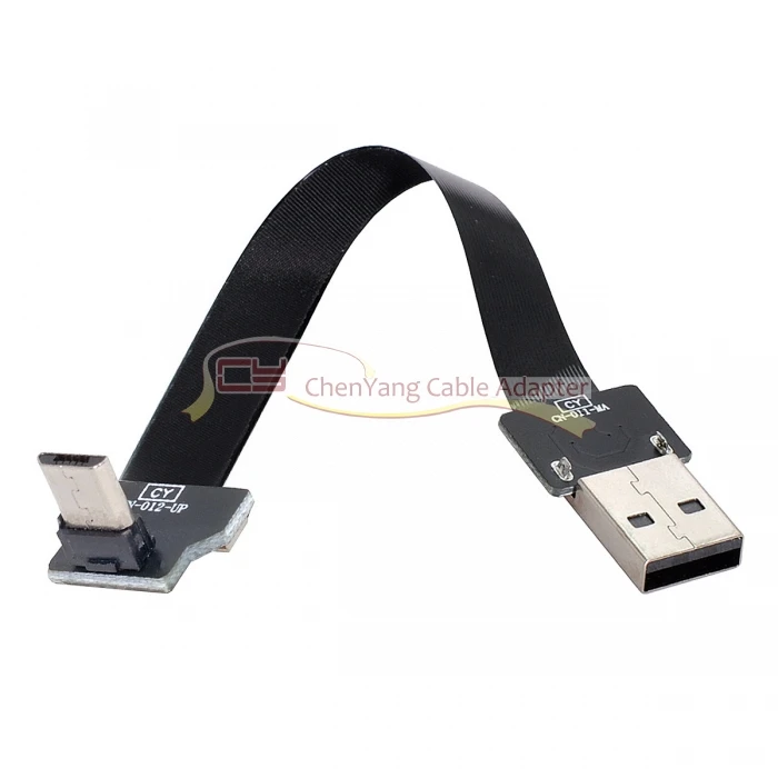 Up Angled USB 2,0 Tipo-A Macho a Micro USB 5Pin Macho Datos Flat Slim FPC Cable para FPV, Disco y Teléfono