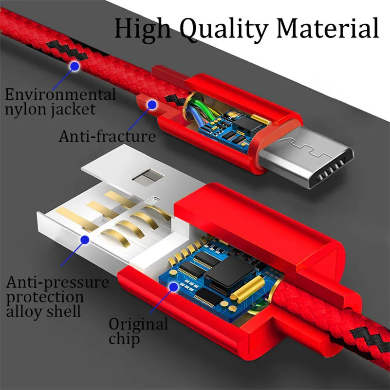 Comprar Cable Micro USB 2.4A de 1m, Cable de carga rápida de sincronización de datos para Samsung, Huawei, Xiaomi, LG, HTC, Android, Microusb
