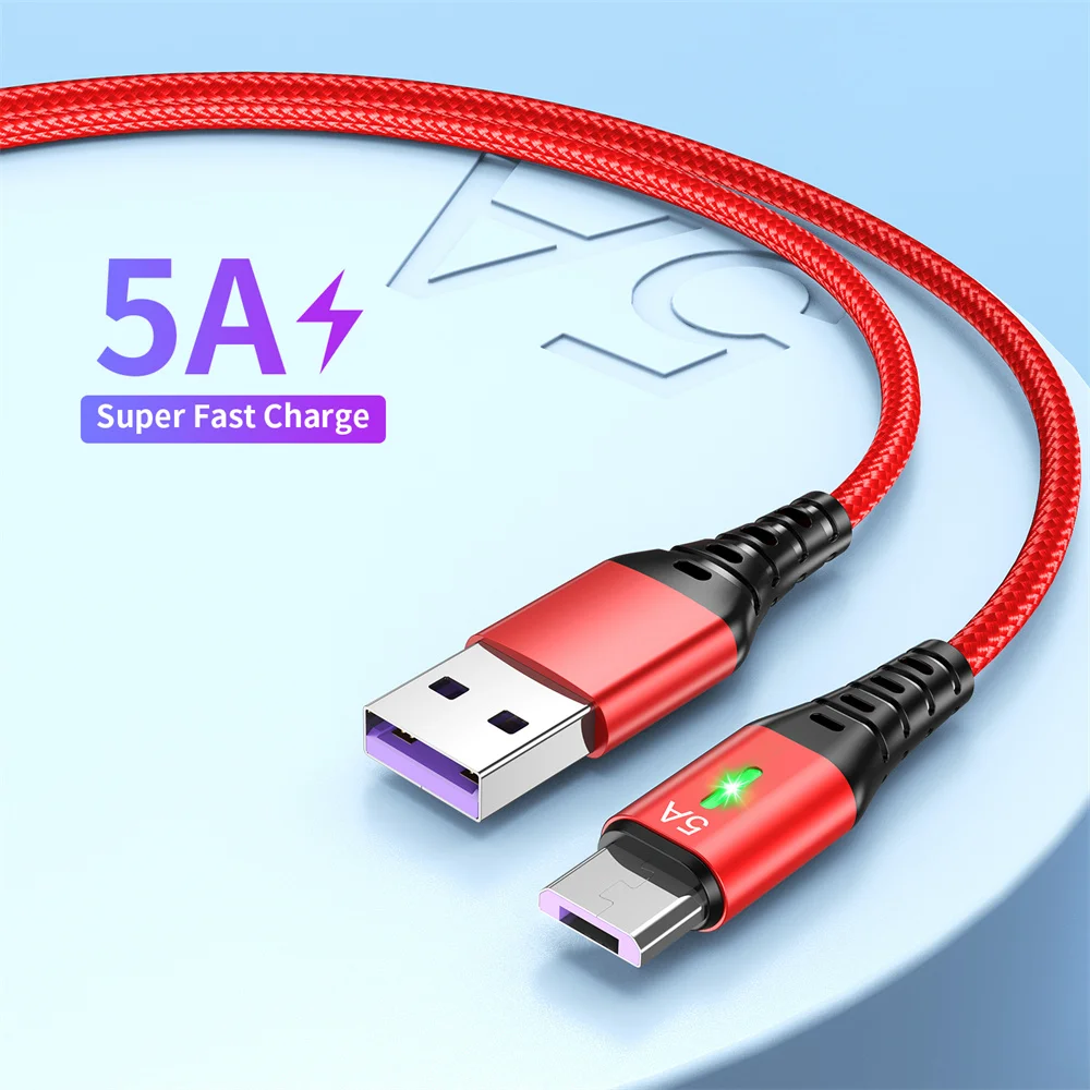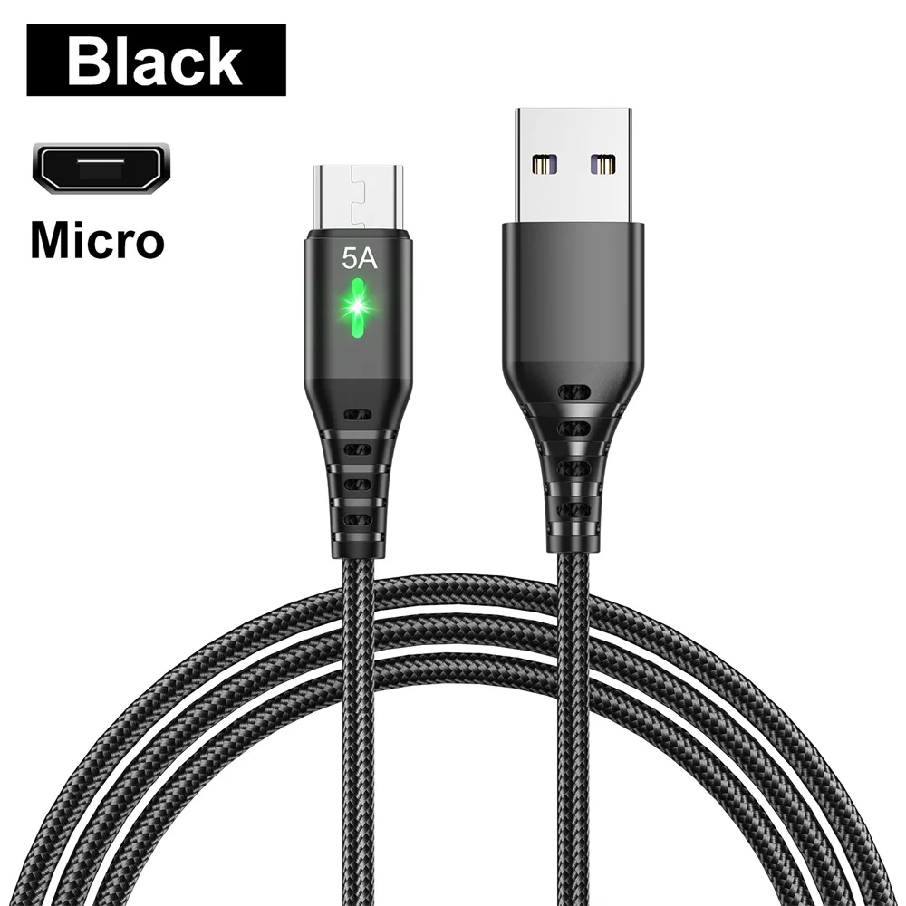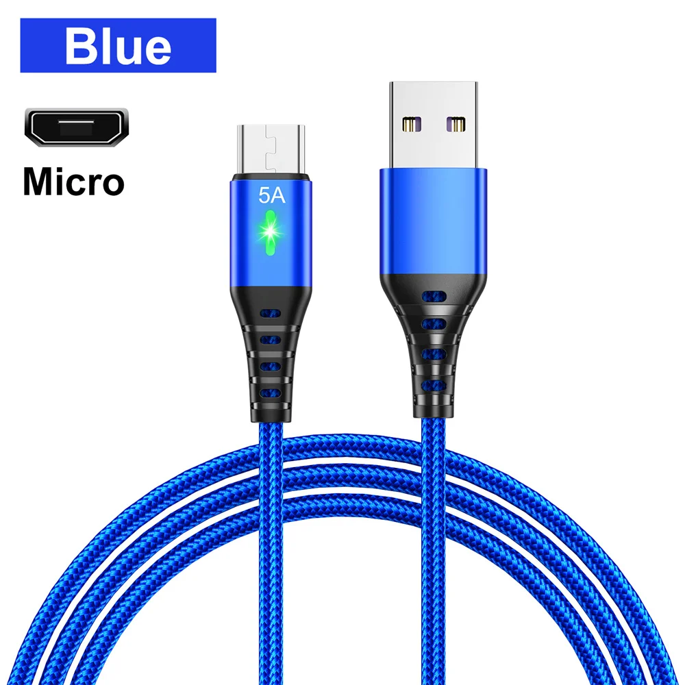 Cable Micro USB 5A, cargador de iluminación LED de carga rápida, Cable de datos Android para teléfono móvil para Samsung A54 Xiaomi Redmi HUAWEI