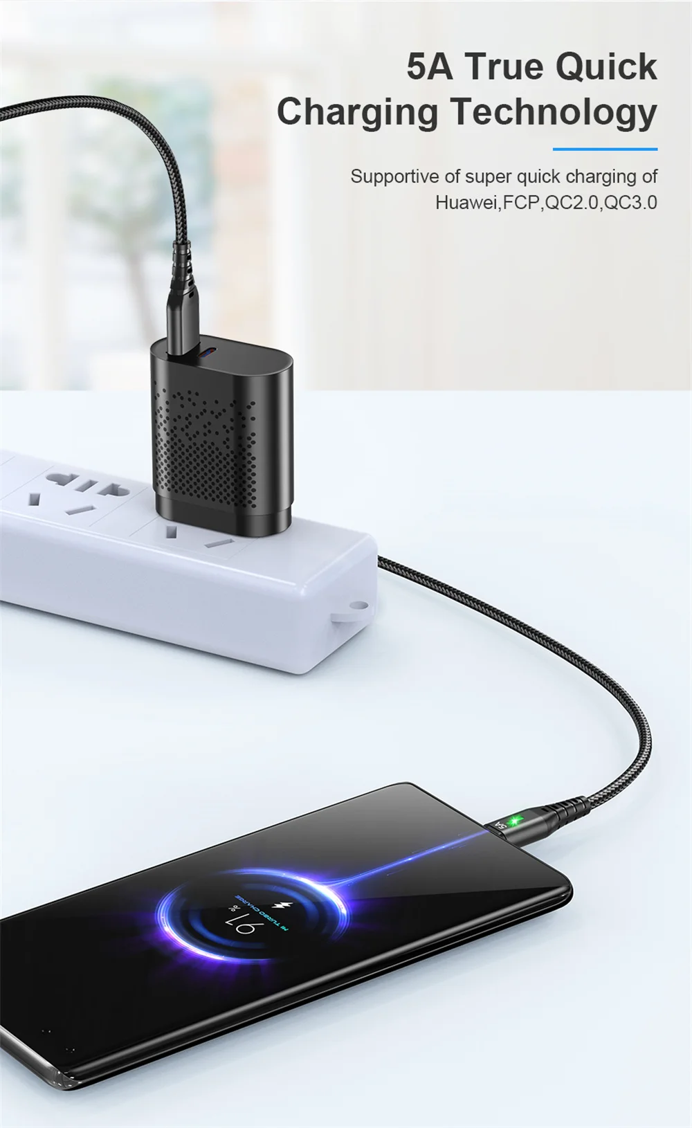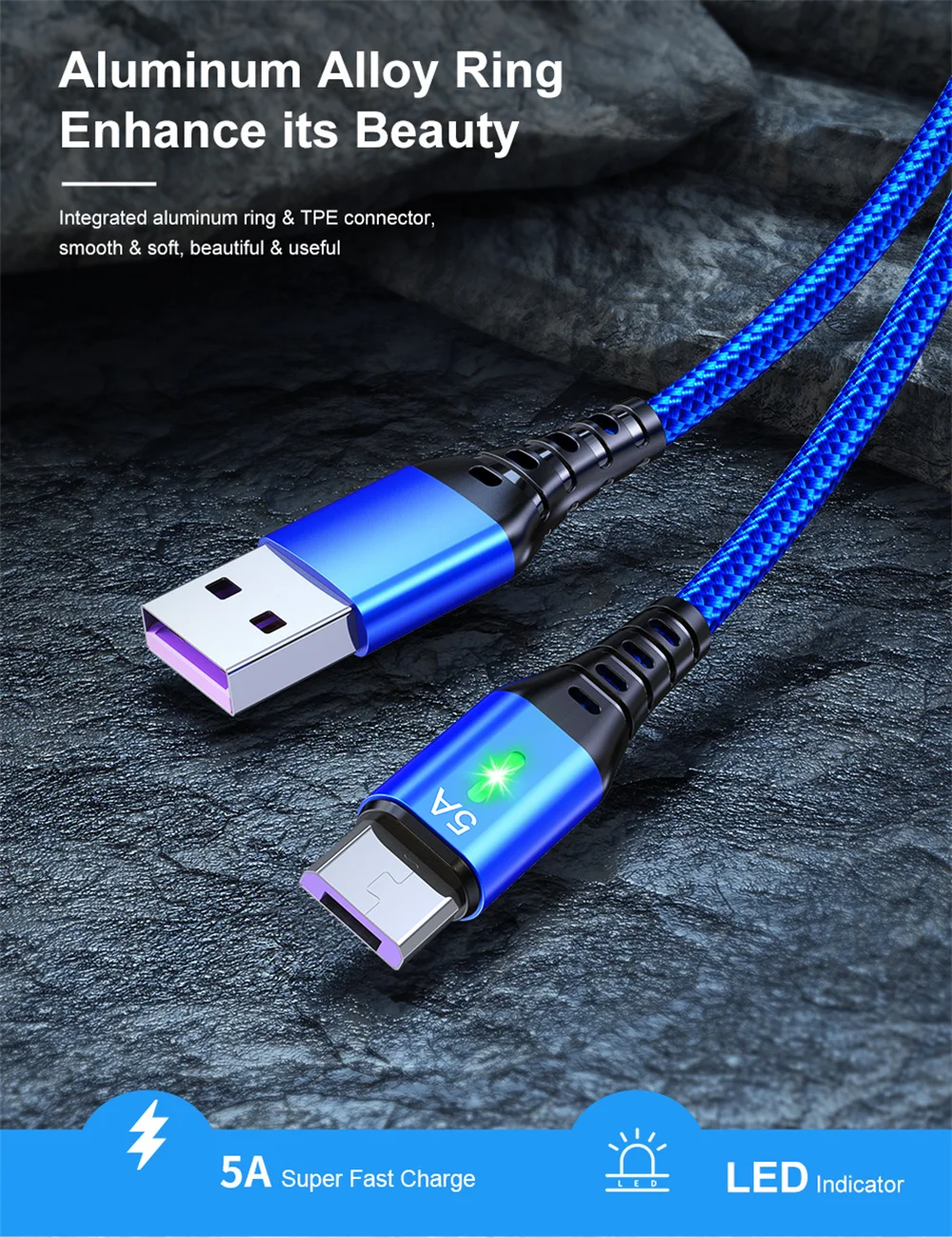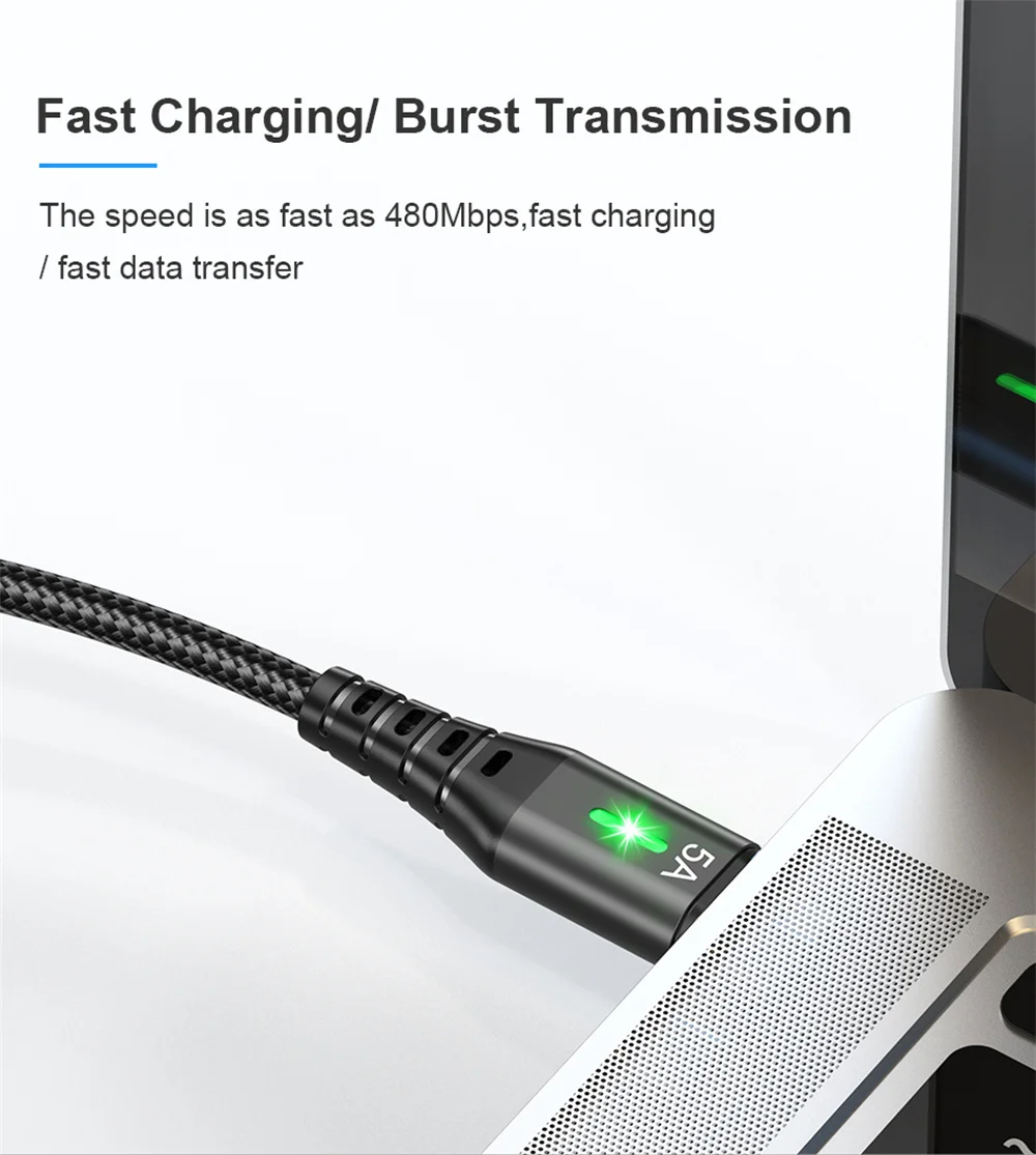 Cable Micro USB 5A, cargador de iluminación LED de carga rápida, Cable de datos Android para teléfono móvil para Samsung A54 Xiaomi Redmi HUAWEI