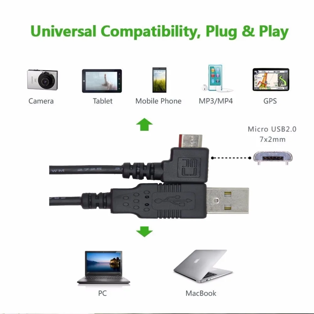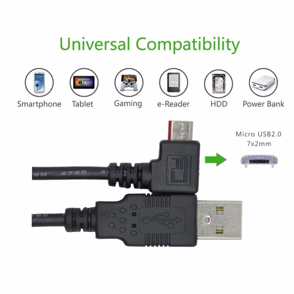 Comprar Cable Micro USB a USB macho a macho, Cable de carga de datos, 1M, ángulo recto de 90 grados, para cámara, teléfono inteligente, tableta, Samsung, Nokia, 2 uds.