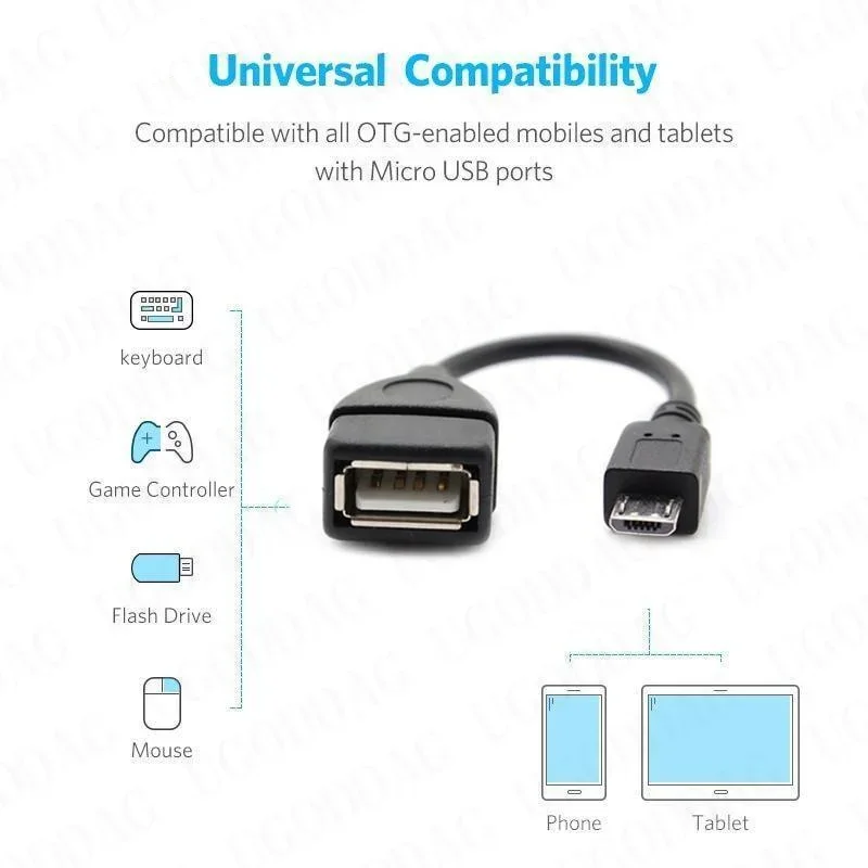 Compatible: todos los dispositivos con Conector Micro USB (El dispositivo debe tener función OTG para que esto funcione)