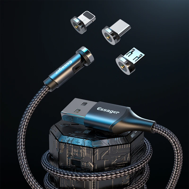 Cable magnético Micro USB C tipo C de 2M, Cable de carga rápida magnético giratorio 540, cargador de cable para teléfono móvil Android