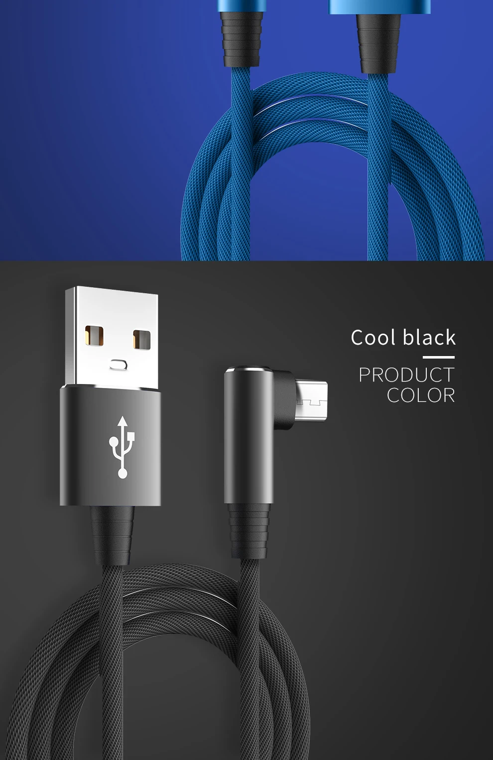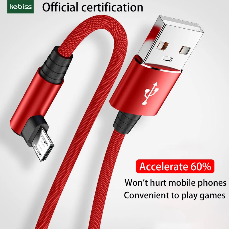 Comprar Cable Micro USB de carga rápida 3A, accesorio para teléfono móvil Samsung, Xiaomi, cargador de Banco de energía, codo de 90 grados