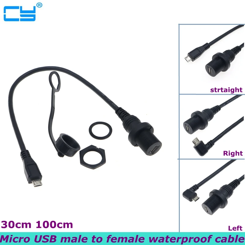 Comprar Cable Micro USB impermeable IP67, 0,3 m, 1m, 2,0, 5 pines, IP 67, macho a hembra, montaje en Panel, Cable de extensión de conector impermeable
