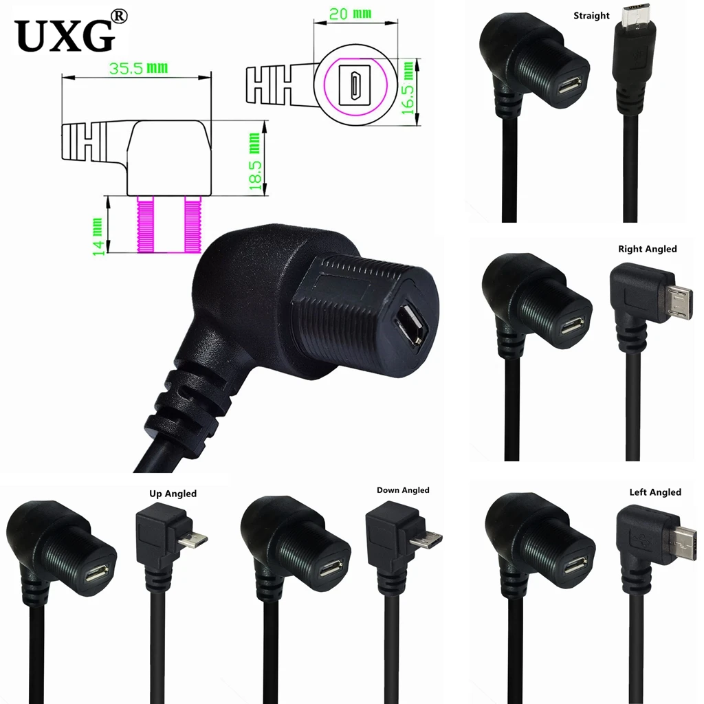Comprar Cable Micro USB impermeable IP67, 90 grados, 5 pines, IP 67 macho a hembra, montaje en Panel, impermeable, M a F