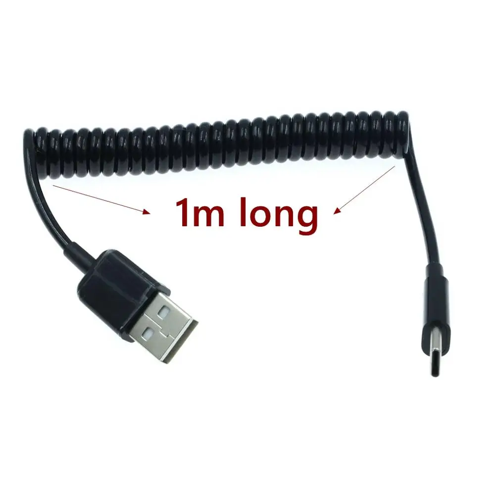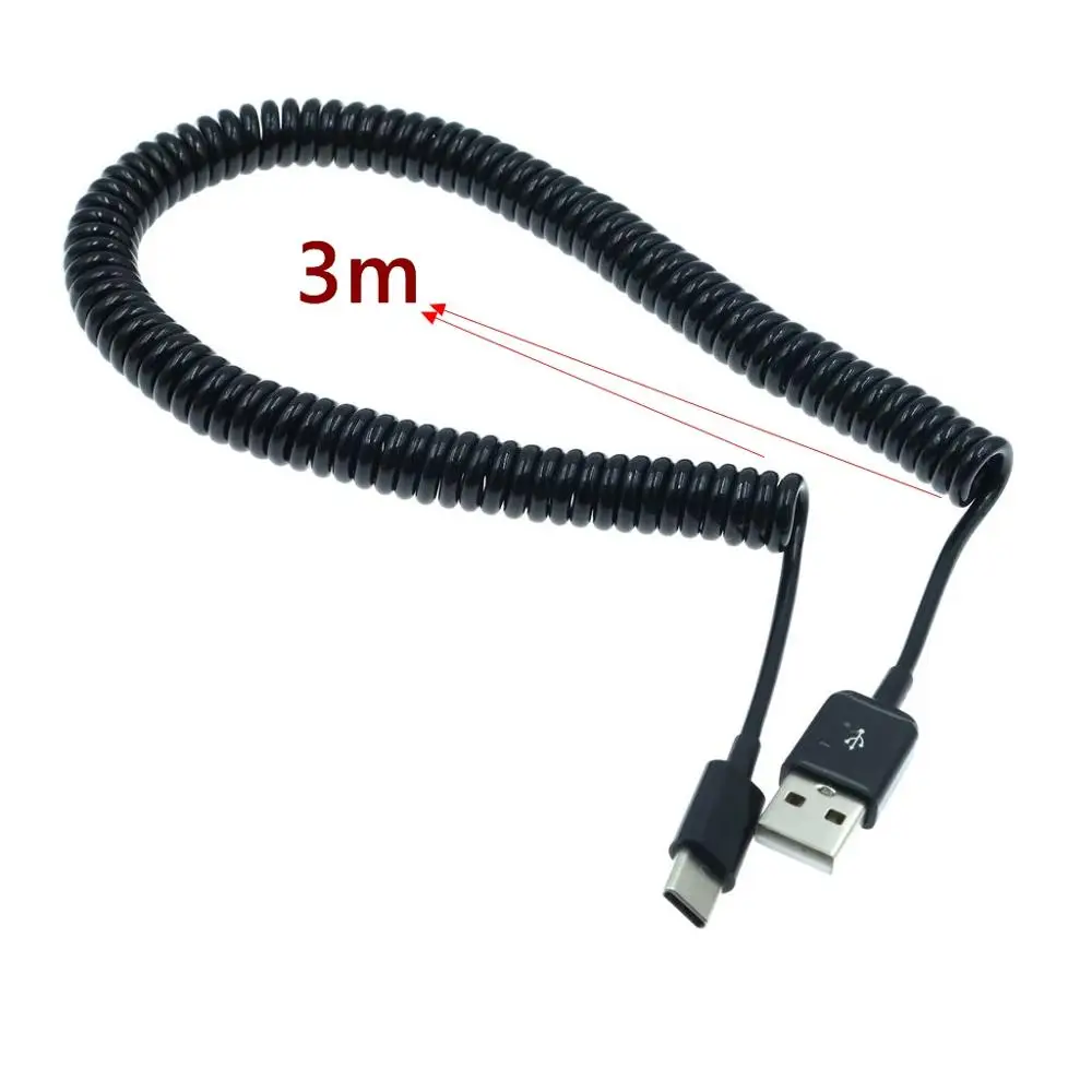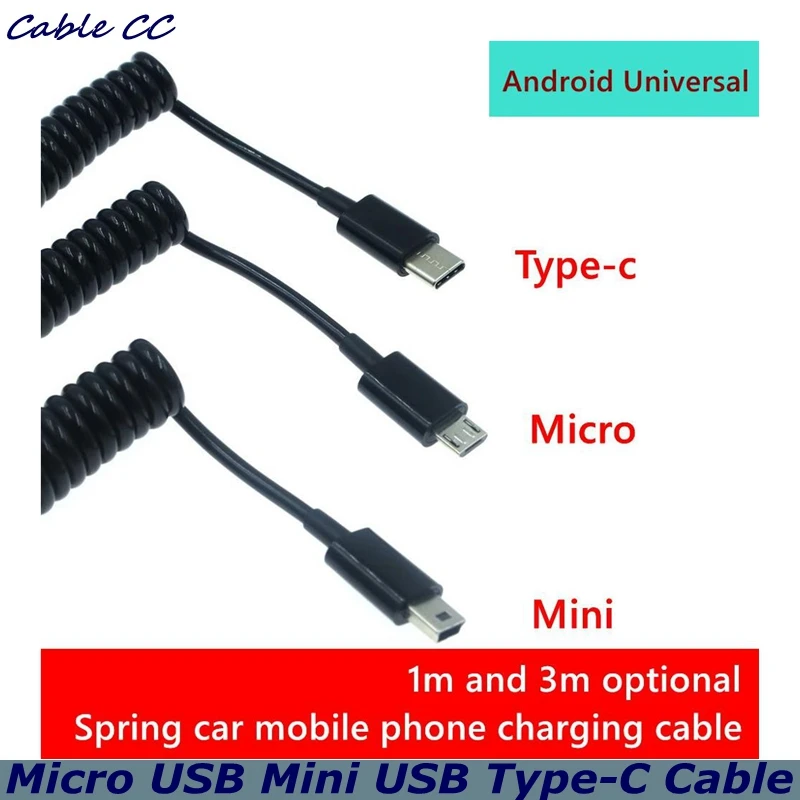 Cable Micro USB de resorte tipo C, Mini cargador rápido USB para Samsung S8, S9, S7 Edge, Cable de datos para teléfonos Android retráctil para coche, 3M