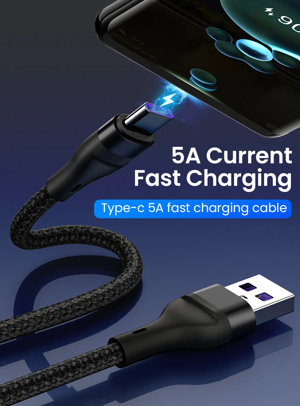 5A USB tipo C Cable Micro USB Cable de carga rápida Cargador rápido de teléfono para Samsung S20 Huawei Xiaomi Cable cargador de 1M
