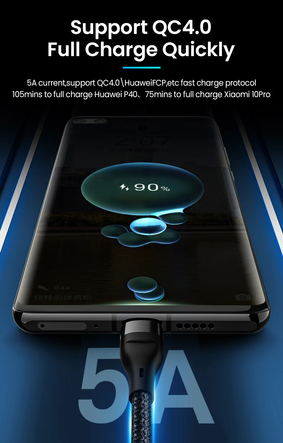 【Current】 La interfaz tipo C admite corriente 5A (40W/22,5 W SCP/FCP)