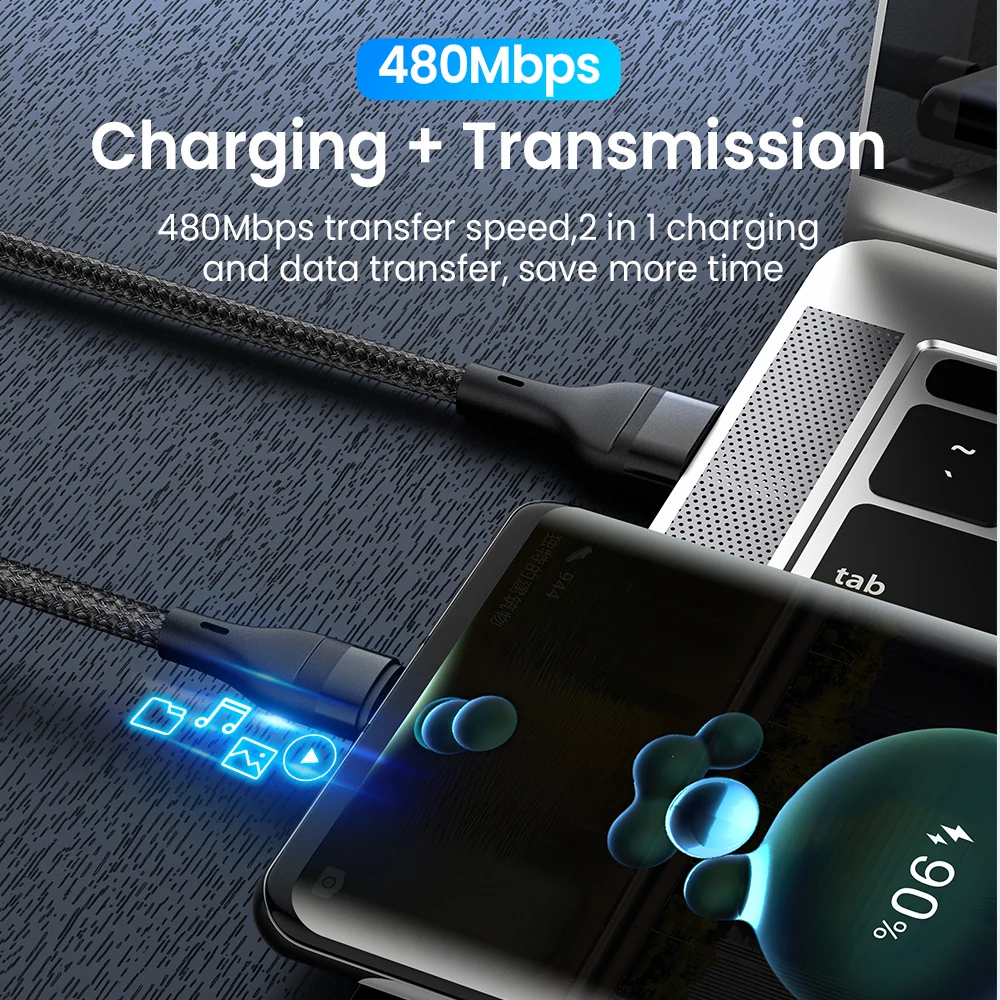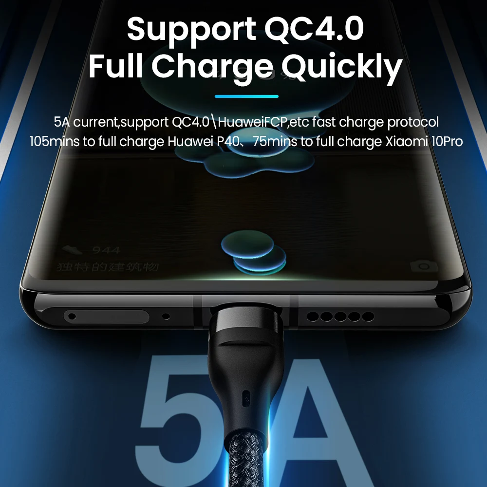 5A USB tipo C Cable Micro USB Cable de carga rápida Cargador rápido de teléfono para Samsung S20 Huawei Xiaomi Cable cargador de 1M