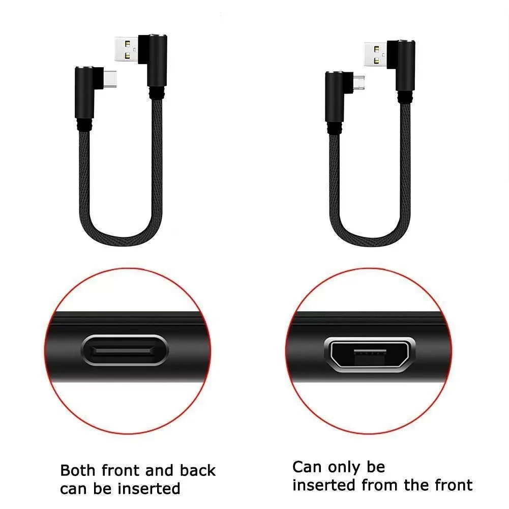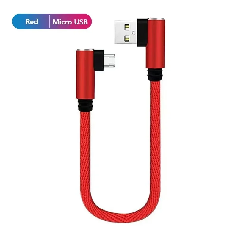 Comprar Cable Micro USB tipo C, Cable de datos de carga rápida, Mini Cable portátil corto de 90 grados, carga para banco de energía, Cable de teléfono móvil de 25cm y 1m
