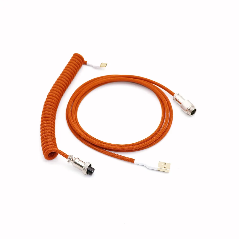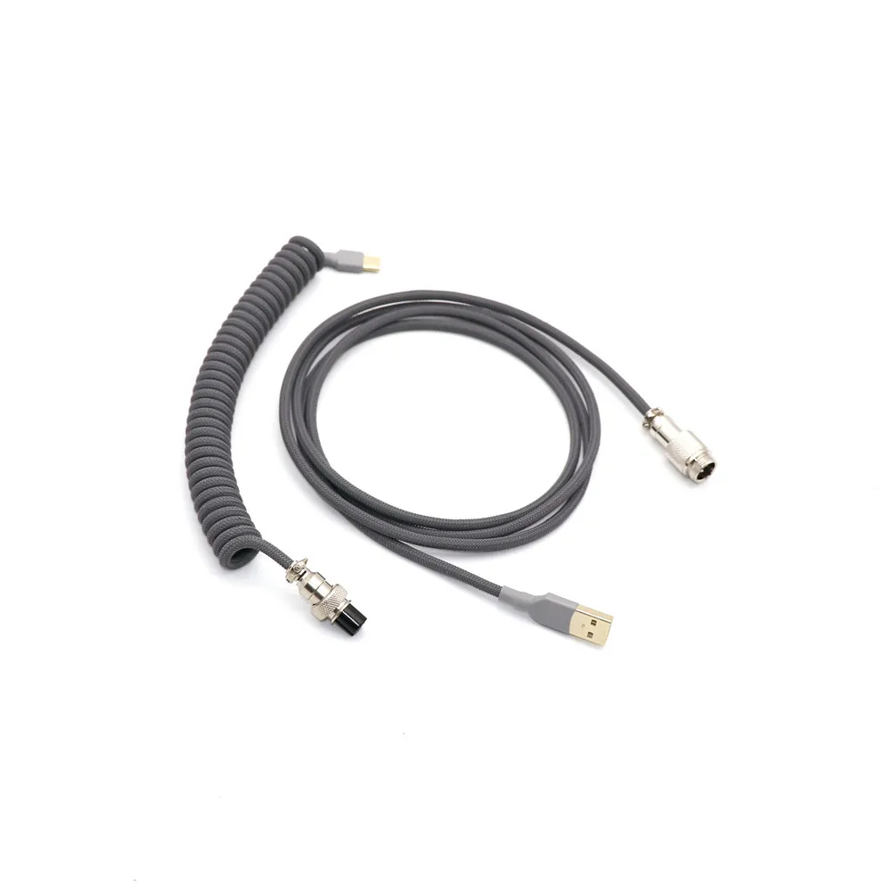 Factory Original Custom Make Single Sleeved PET Coiled Spring Coiling Type C Mini Micro USB Cable for Mechanical Keyboard Cable With GX16 Aviator