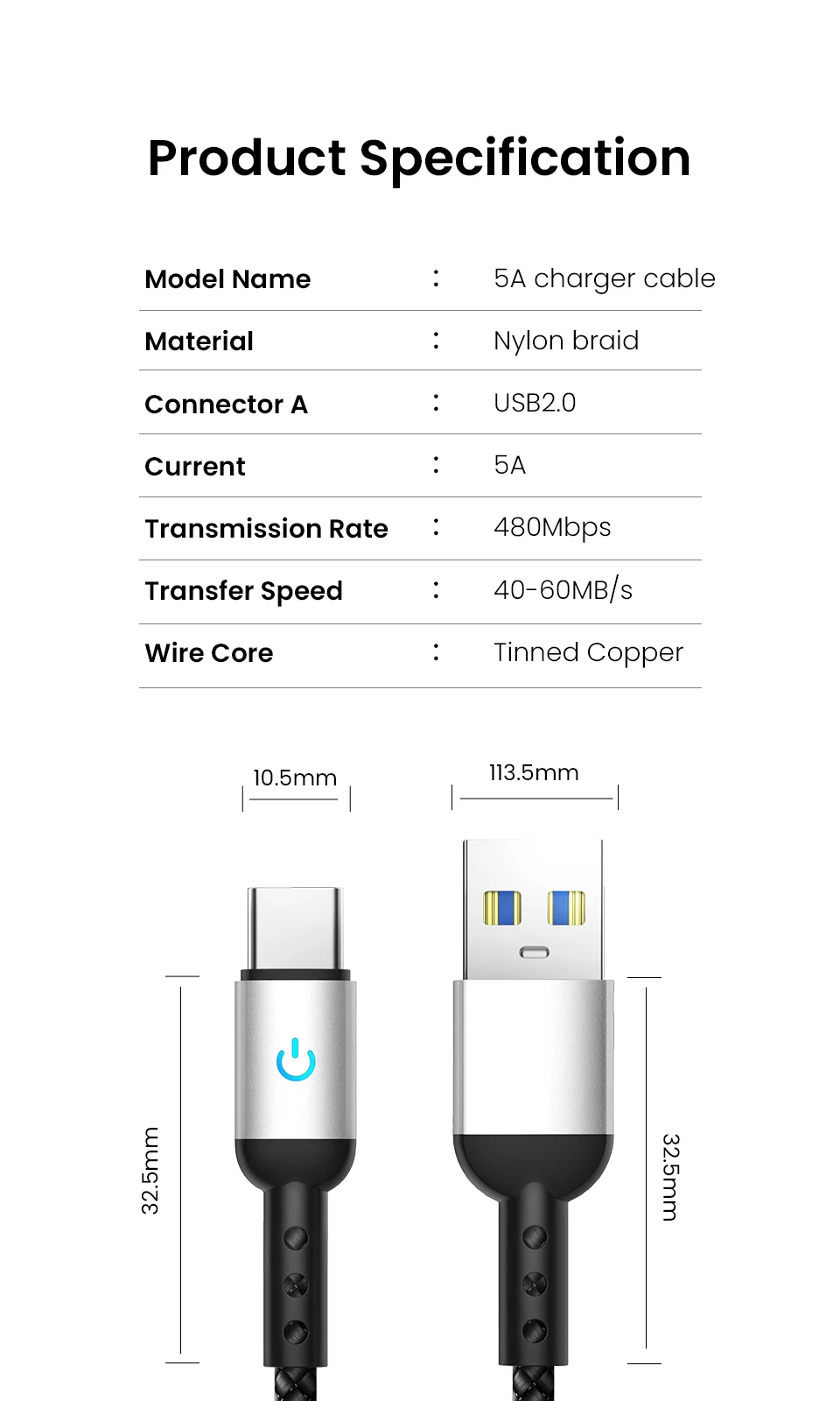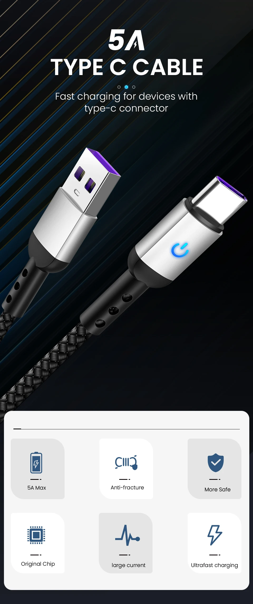 Comprar Cable Micro USB tipo C para teléfono móvil, cargador de carga rápida 5A, 40W, LED, para Android, Xiaomi S9, Samsung y Huawei