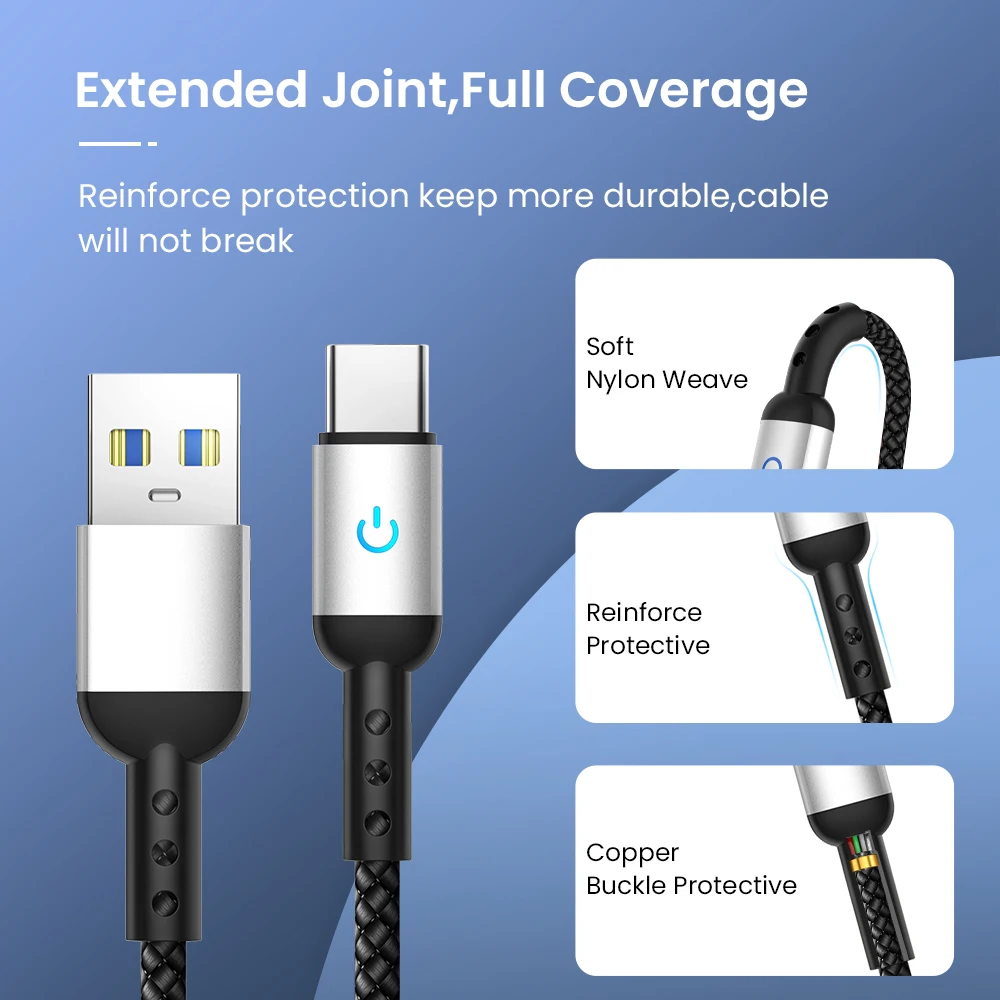 Comprar Cable Micro USB tipo C para teléfono móvil, cargador de carga rápida 5A, 40W, LED, para Android, Xiaomi S9, Samsung y Huawei