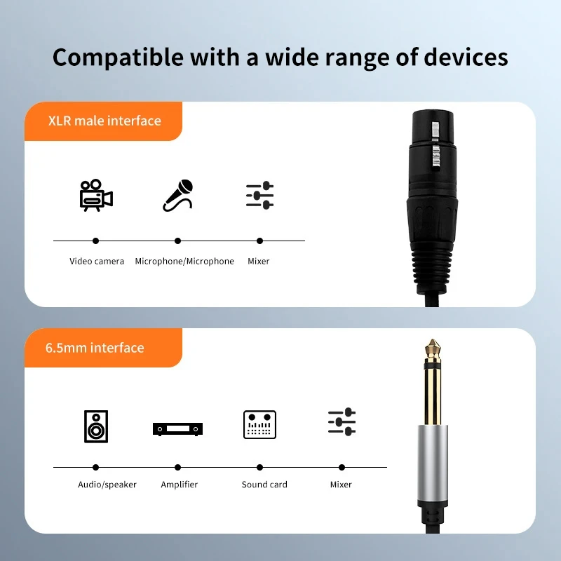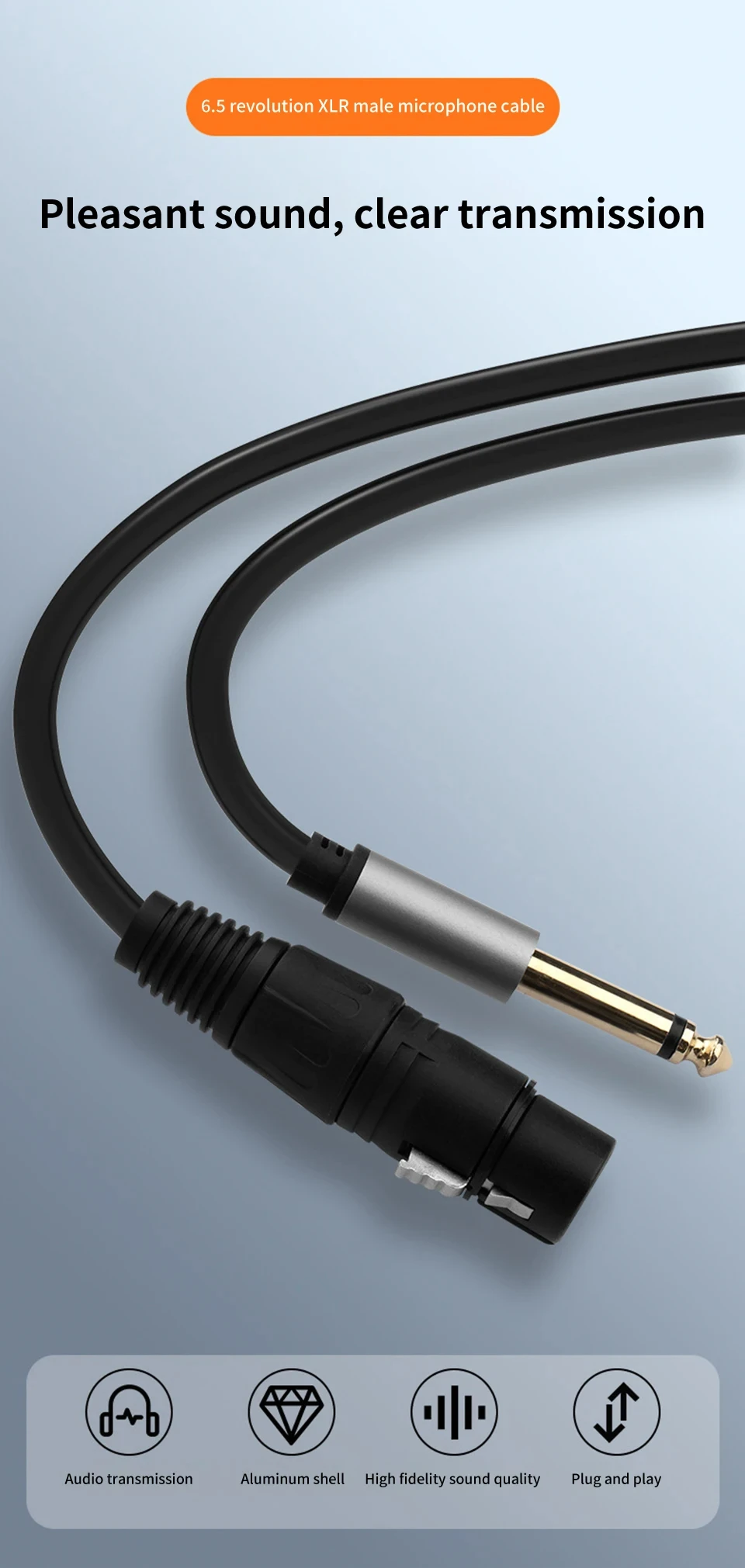 Cable de micrófono auxiliar a Cable de Audio XLR de 6,5mm, Cable equilibrado XLR para amplificador de altavoz, mezclador de micrófono, Cable de Audio auxiliar de 6,35mm