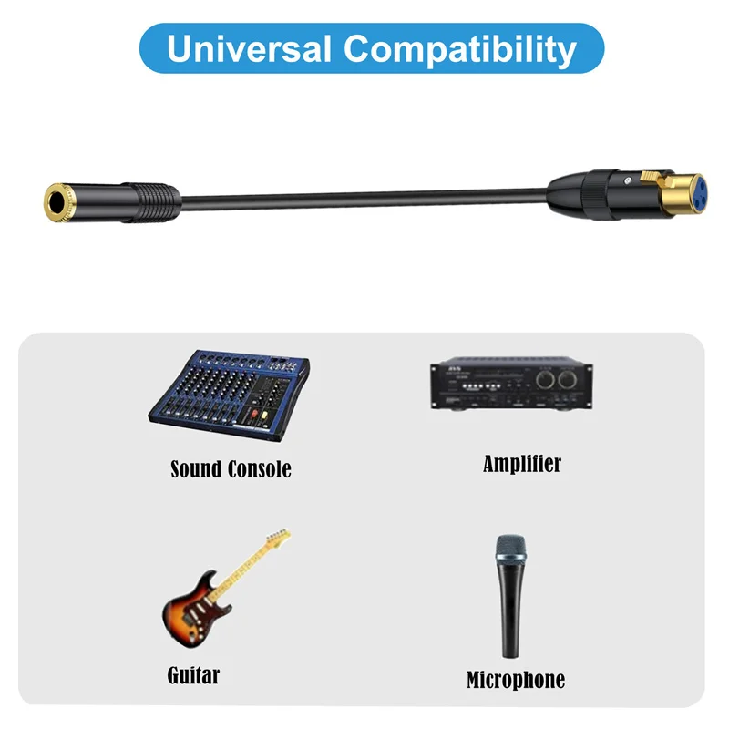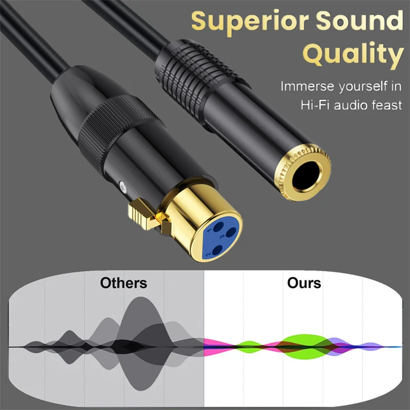 Conector de micrófono XLR 6.Línea de extensión hembra estéreo de 35 mm, el cobre libre de oxígeno proporciona máxima conductividad y durabilidad;La carcasa de aleación de zinc garantiza una pérdida mínima de señal y el conector chapado en oro de 24 quilates es adecuado para todos los 6.Dispositivos de 35 mm y XLR, lo que facilita su conexión y desconexión.