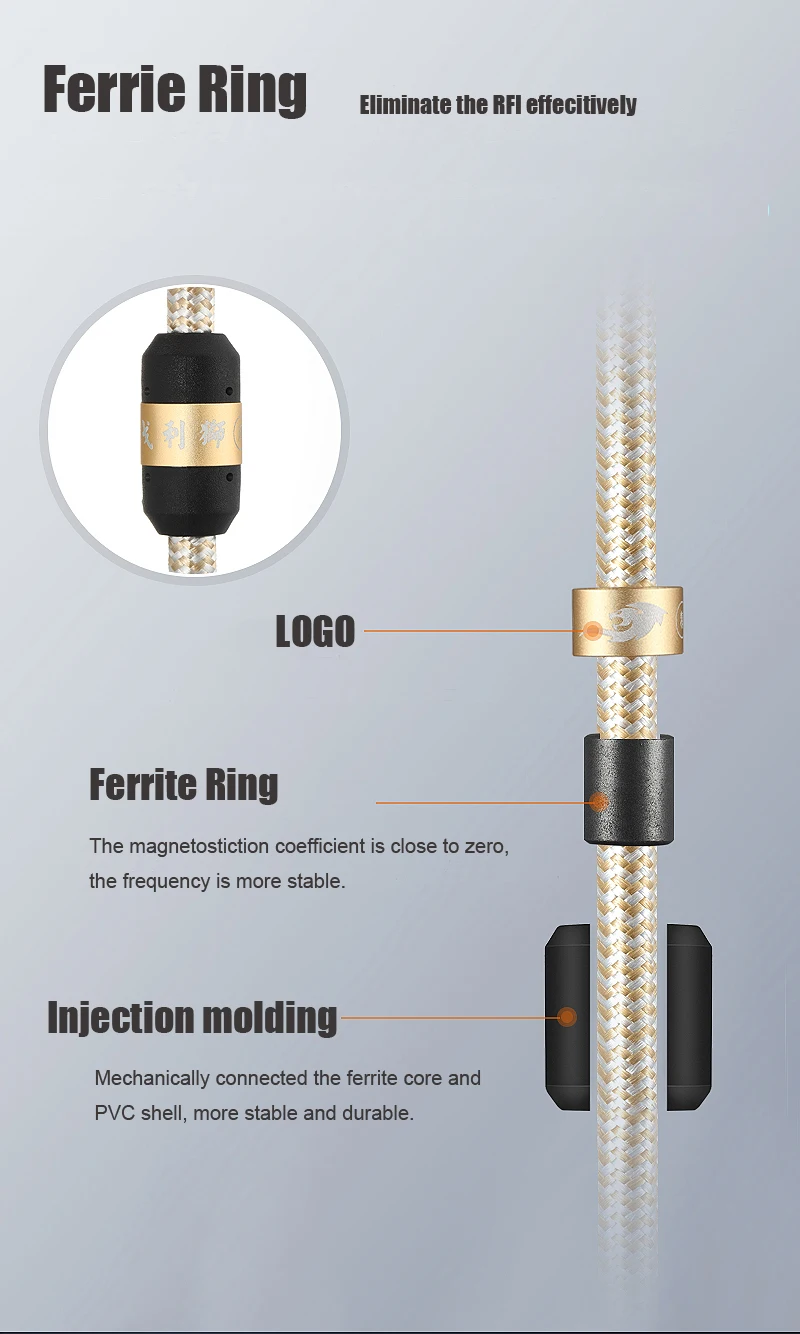 1. Diseño antiinterferencia de cable de estructura, el cable con blindaje multicapa de alta calidad para rechazar al máximo el desorden, Mantener la fidelidad del sonido.