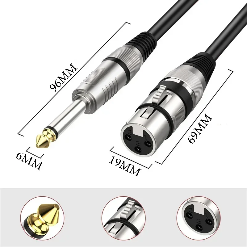 Comprar Cable de micrófono Jack 6,35mm TS 1/4 macho a XLR hembra Cable de Audio de micrófono para altavoz amplificador de guitarra mezclador de amplificadores, Etc.